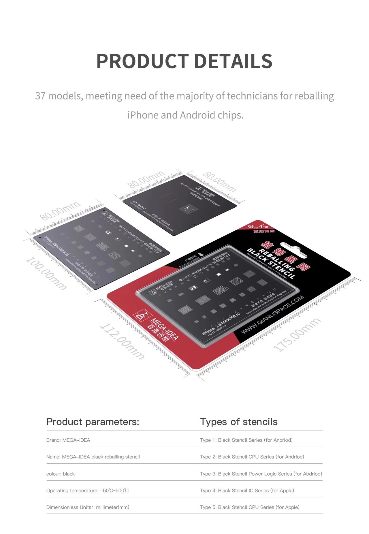 Трафарет Qianli Mega-IDEA BGA для реболлинга, черный трафарет для IPhone 66S6P77P88PXSXRMAX11PROMAX инструменты для ремонта процессора телефона