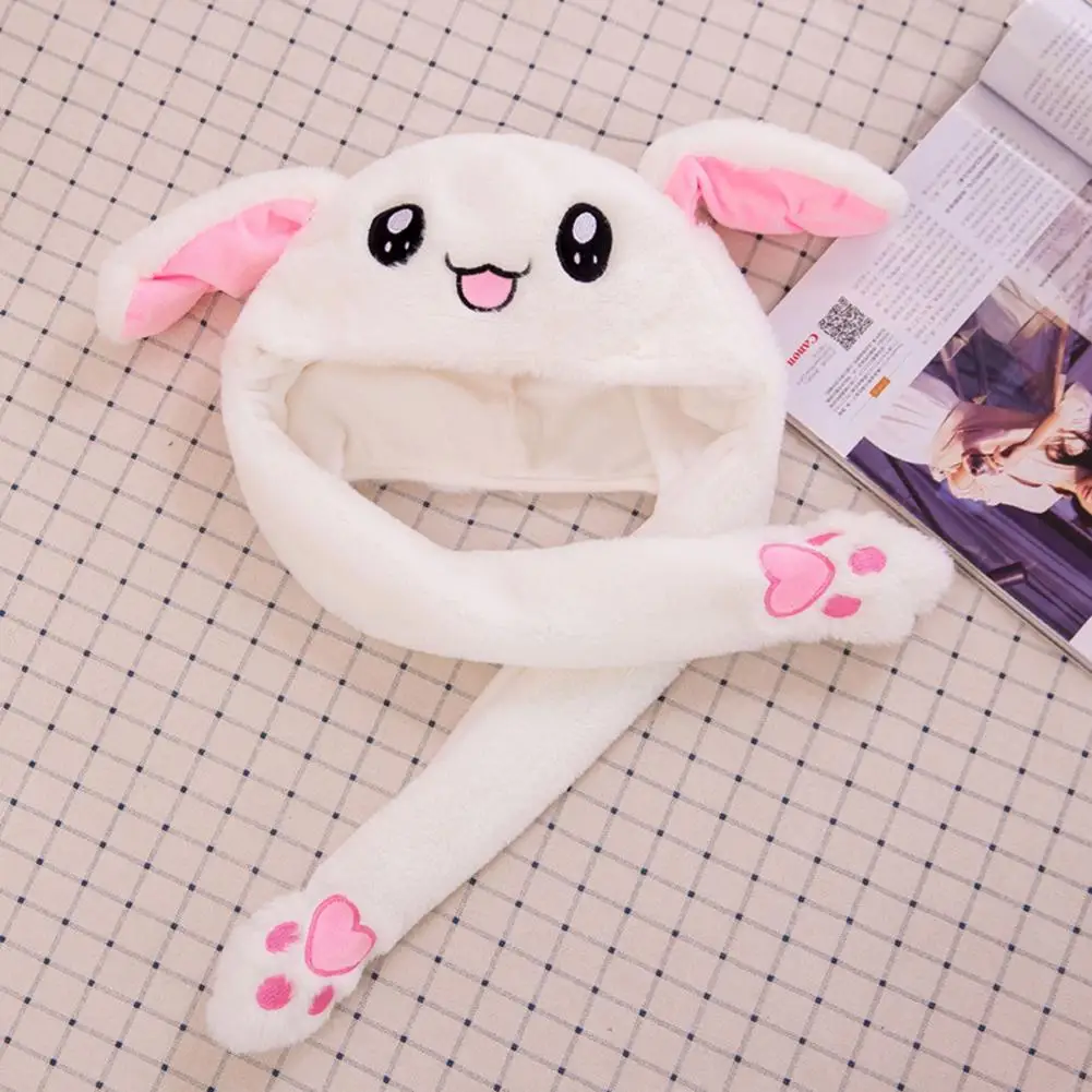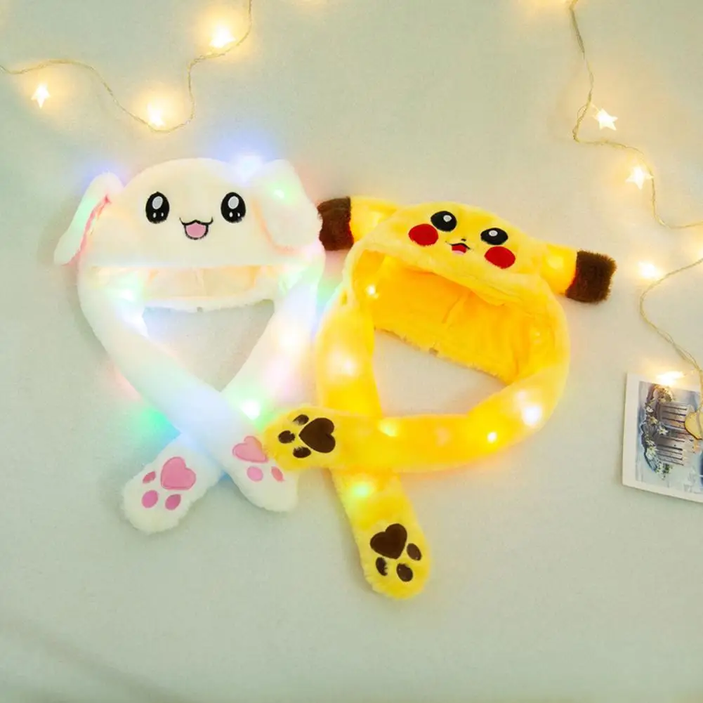 Милая светящаясясветильник ящаяся плюшевая шапка кролика, забавная игрушка для игры вверх и вниз, движущаяся подушка безопасности с ушками кролика, игрушка, шапка для девушки, детские подарки