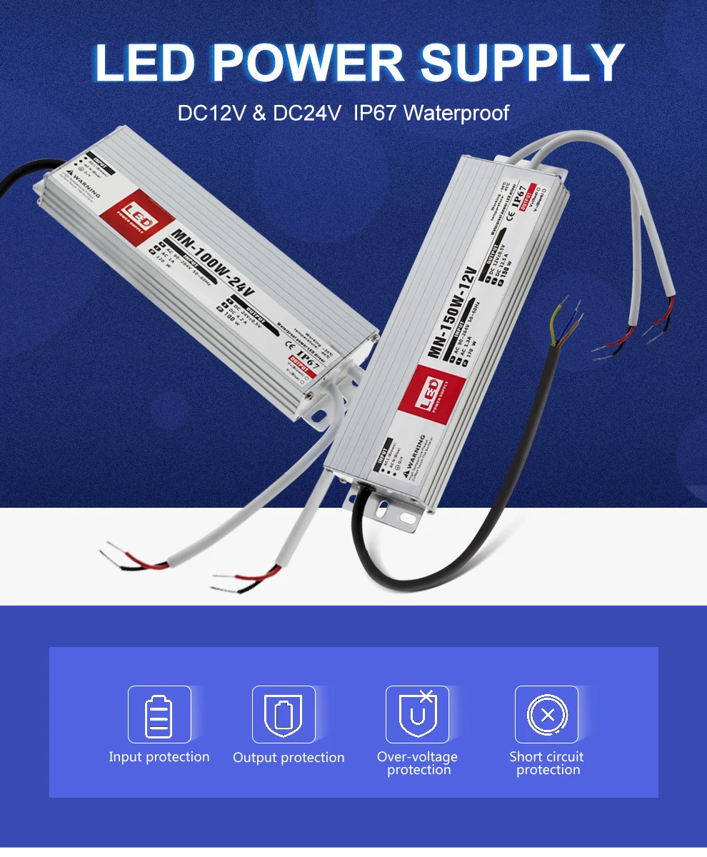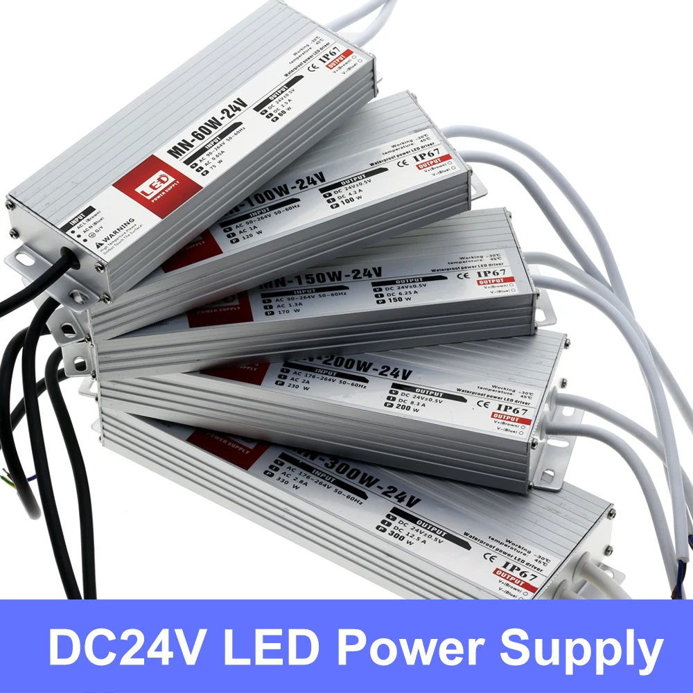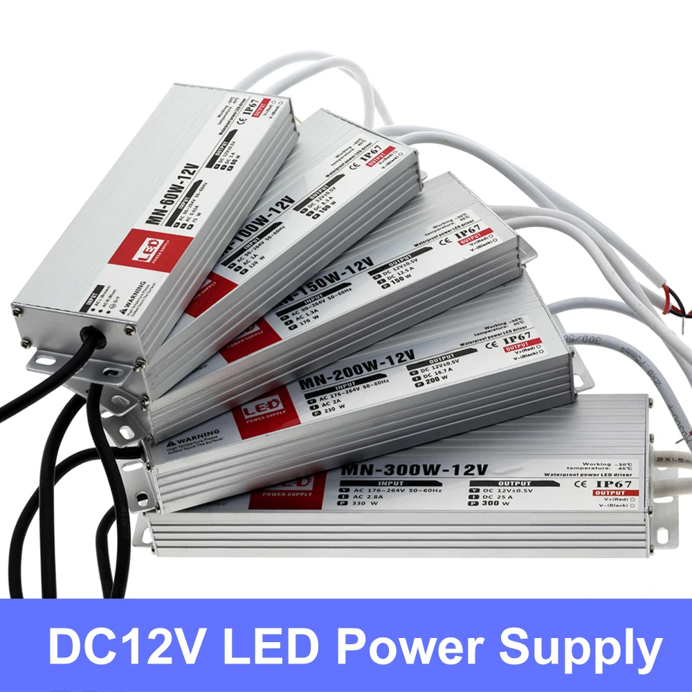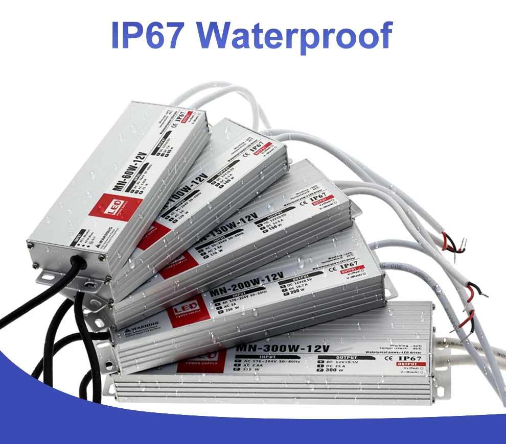 Трансформаторы для наружного светильник, водонепроницаемый светодиодный драйвер, 12 В постоянного тока, 24 В, IP67, источник питания, 10 Вт, 20 Вт, 30 Вт, 45 Вт, 60 Вт, 100 Вт, 200 Вт, 300 Вт