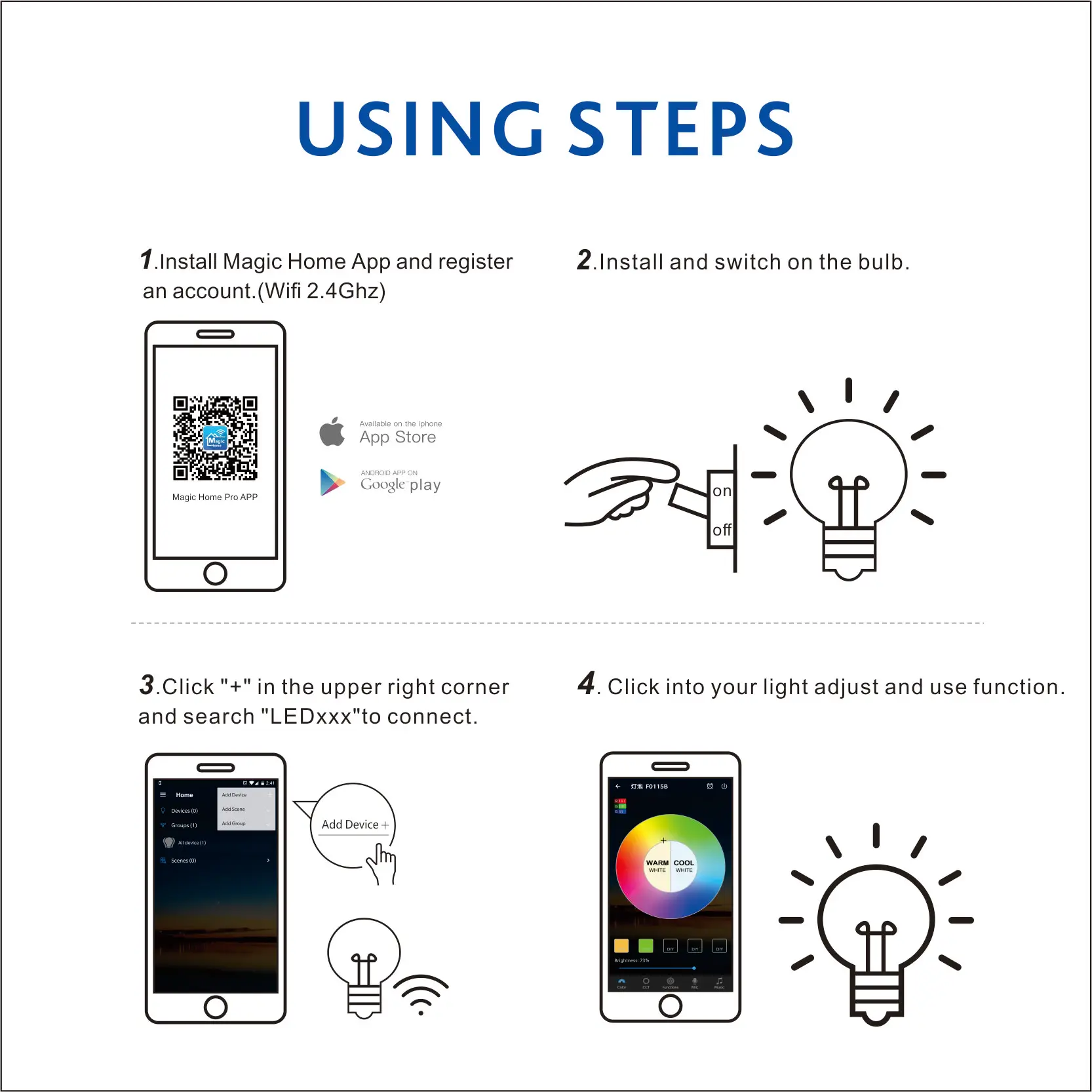 Тип программного обеспечения приложения: Magic Home (пожалуйста, отсканируйте qr-код коробки, чтобы загрузить приложение)