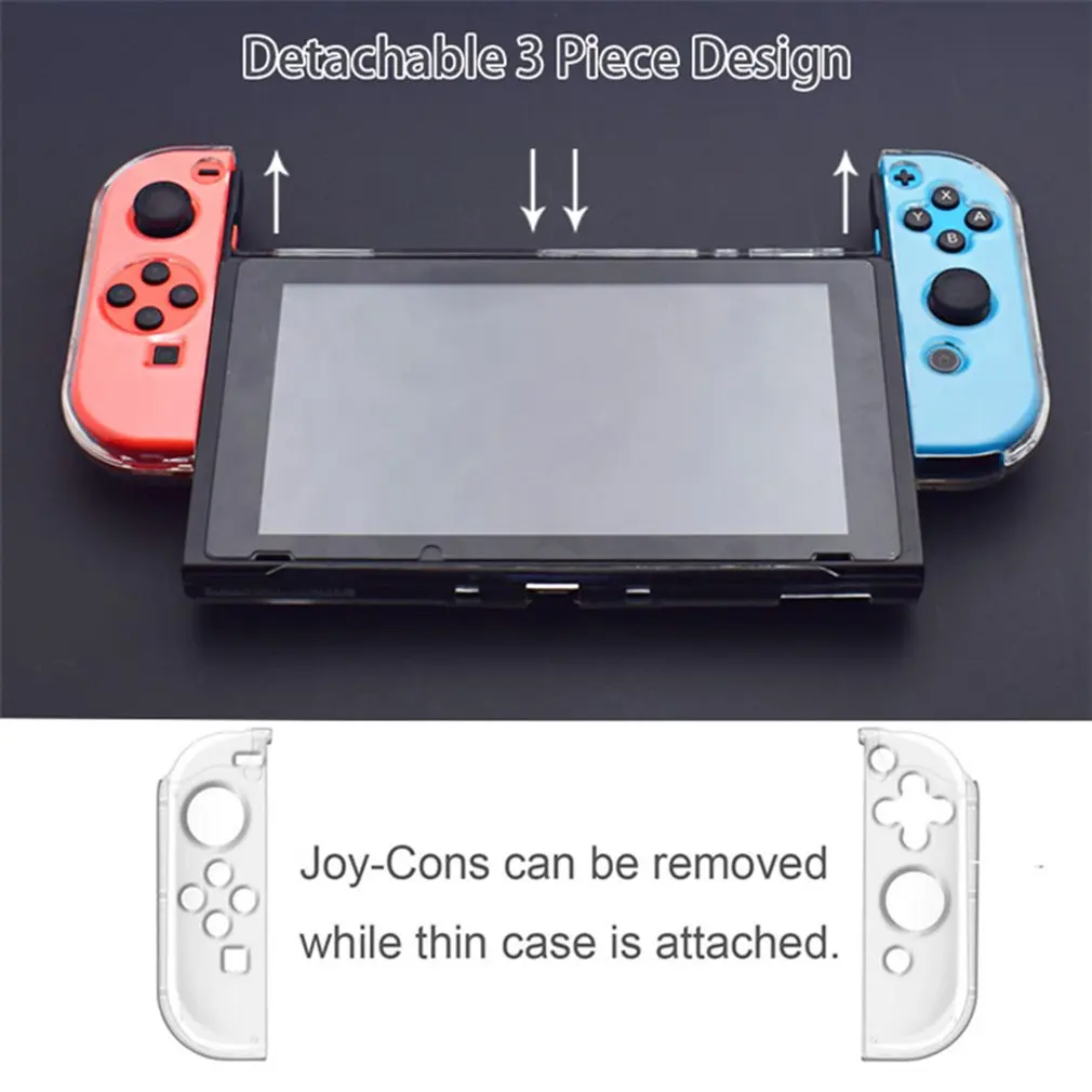 Съемный прозрачный чехол для ПК с кристаллами для ПК, чехол с переключателем NS NX, жесткий прозрачный чехол с задней крышкой, Ультратонкий чехолОсобенности:1. Идеально совместим с переключателем. Прозрачный, простой дизайн улучшает его естественную красоту.2. Точные вырезы для легкого доступа ко всем портам/кнопкам.3. Тонкий чехол, который не добавит лишнего размера или веса.4. Гладкая поверхность позволяет чувствовать себя комфортно.5. Нижняя конструкция идеально подходит для держателя.6. Твердый корпус ПК с защитой от царапин обеспечивает максимальную защиту.7. Усиленные углы защищают от ударов, падений, пыли и отпечатков пальцев.8. Прочный и прочный.9. Чехол разделен на 5 частей, вам не нужно отсоединять чехол, чтобы снять Joy-Con.Спецификация:Цвет: прозрачныйМатериал: ПоликарбонатПосылка включает в себя:1 х жесткий прозрачный чехол