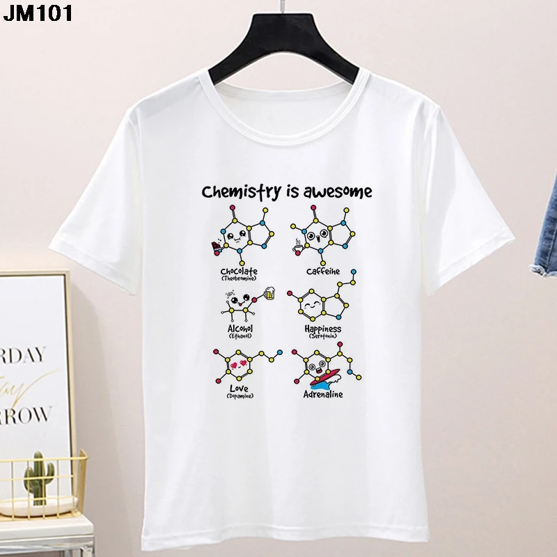 Футболка женская в стиле Харадзюку, модная Милая футболка с забавным рисунком химии Is Awesome, Белый Топ, в стиле Харадзюку