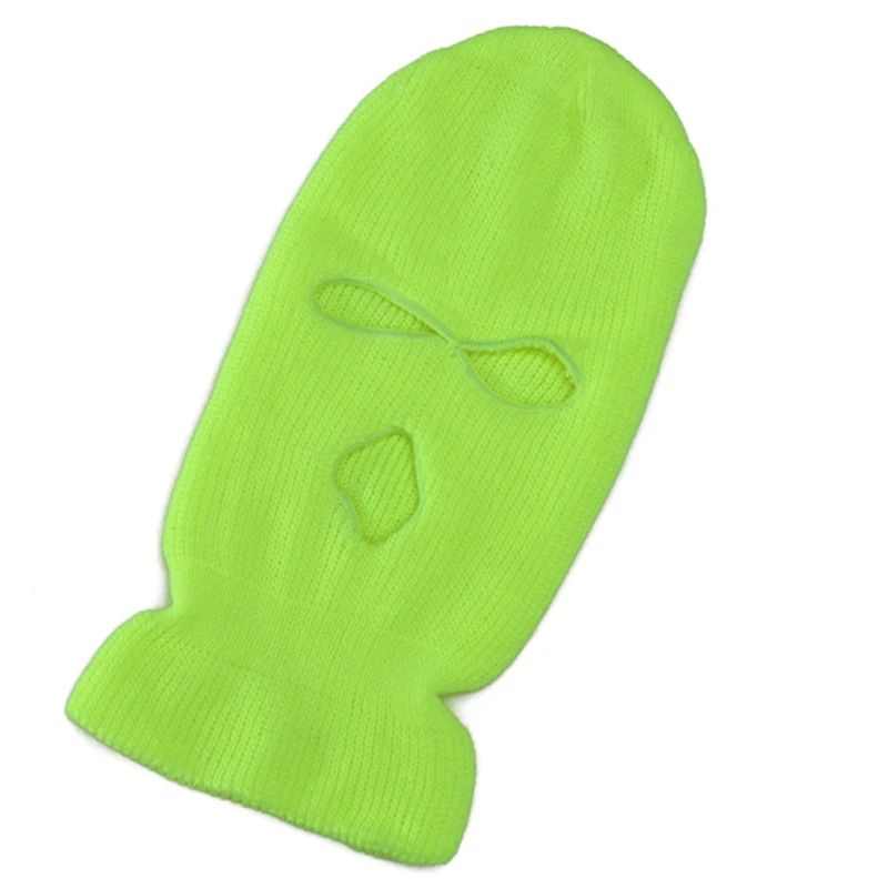 Балаклава унисекс с 3 отверстиями, неоновая однотонная Вязаная Шапка-бини 1XCA