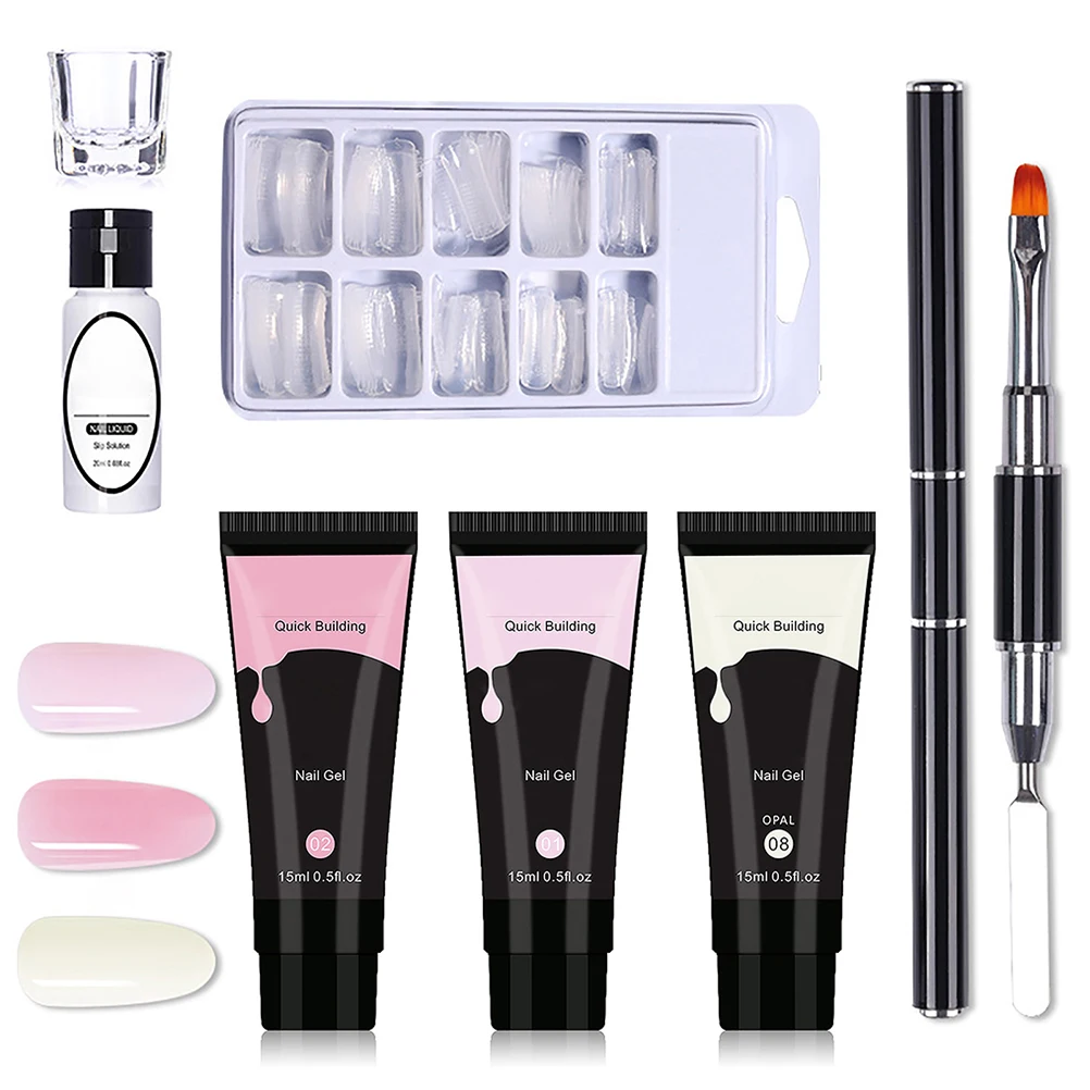 Набор гелевых ногтей, набор для начинающих гелей, быстрый набор для наращивания, набор для начинающих гелей
