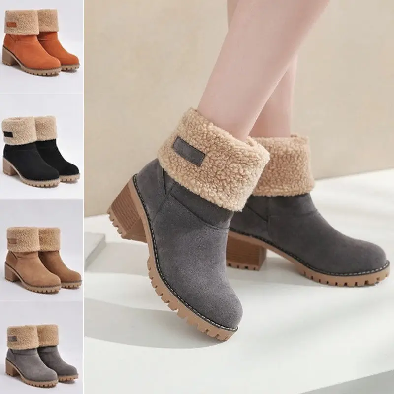 Nisзимние ботинки для женщин; Теплые удобные повседневные зимние ботинки круглый носок женские плюшевые Сапоги на среднем каблуке женские сапоги высотой до середины голени