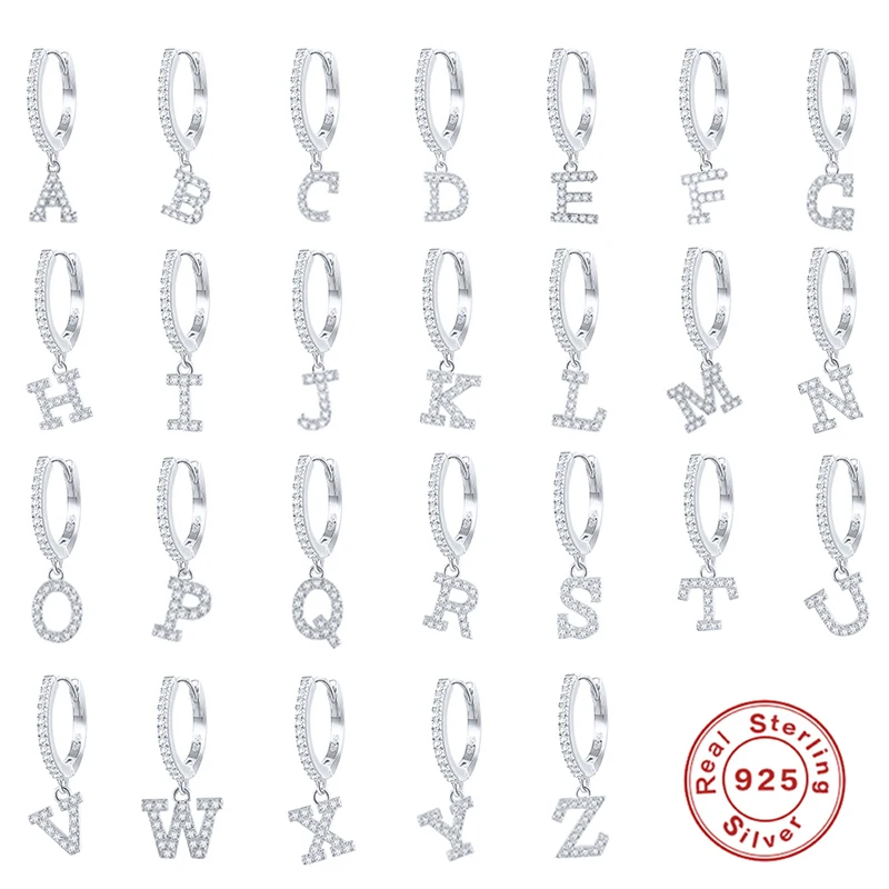 Aide 925 стерлингового серебра 26 букв Подвесные серьги в виде колец, для Для женщин кубического циркония первоначального со словом рисунком именем буквами очарование серьги Huggie 1 шт.