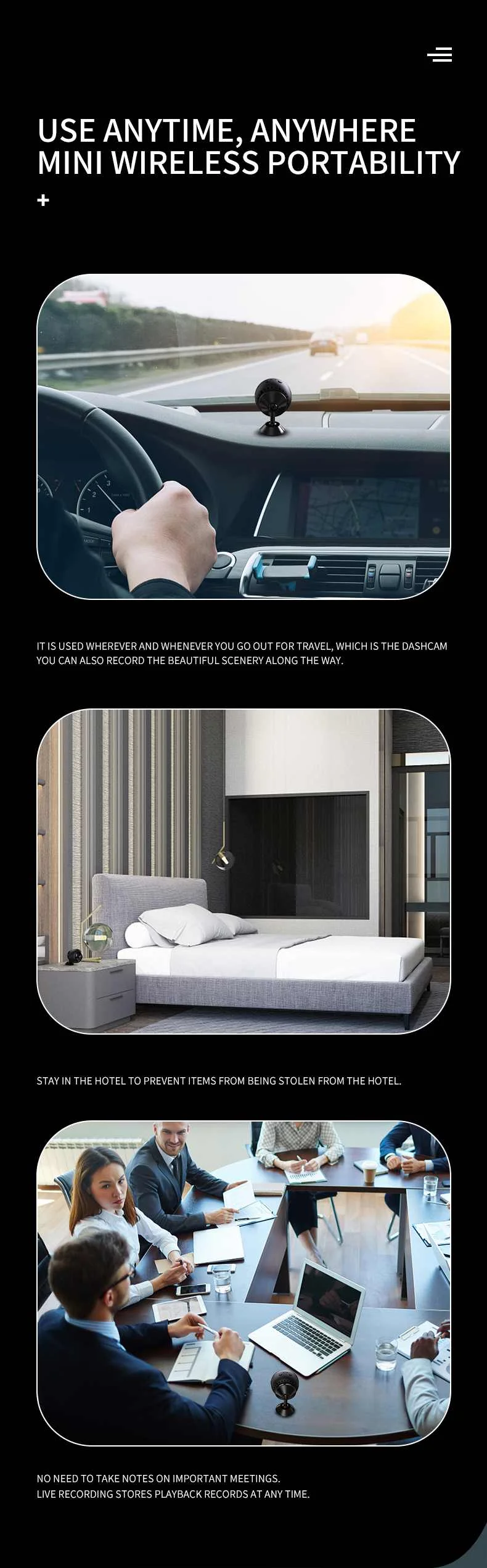 -Широкий угол 170 °Большое широкоугольное поле обзора дает вам панорамный миниот