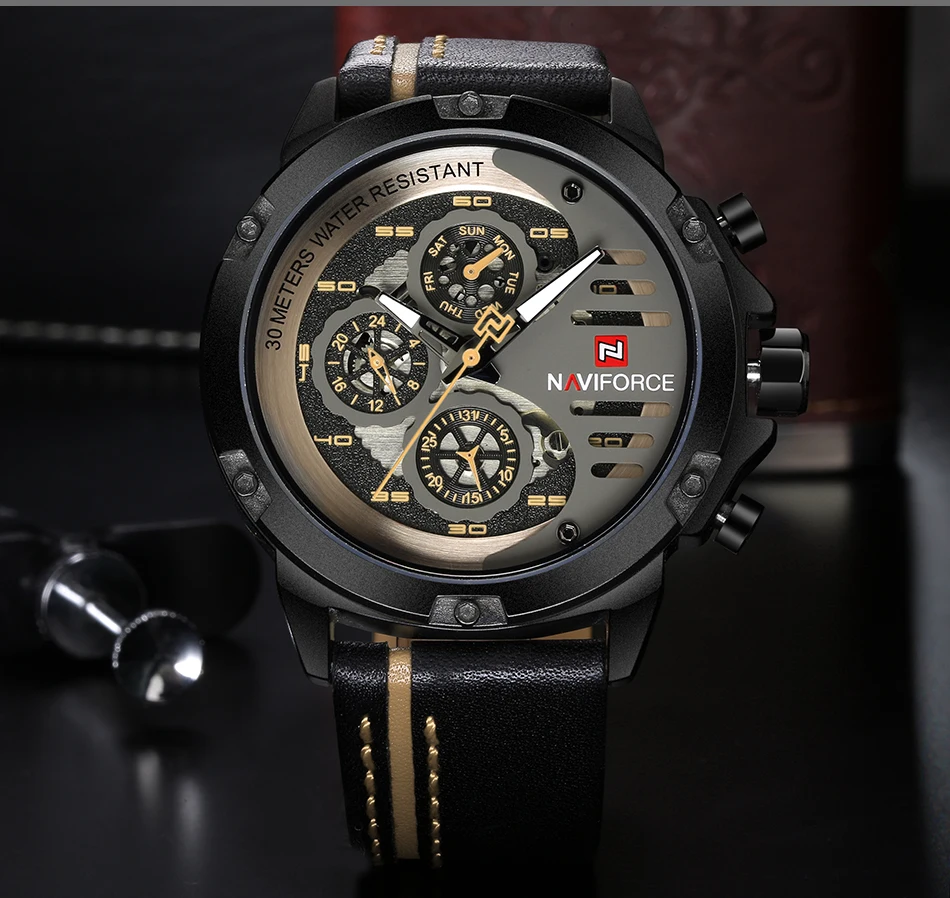 Часы наручные NAVIFORCE Мужские кварцевые, брендовые Роскошные водонепроницаемые спортивные с кожаным ремешком, с датой