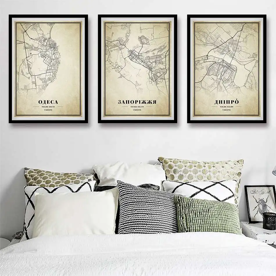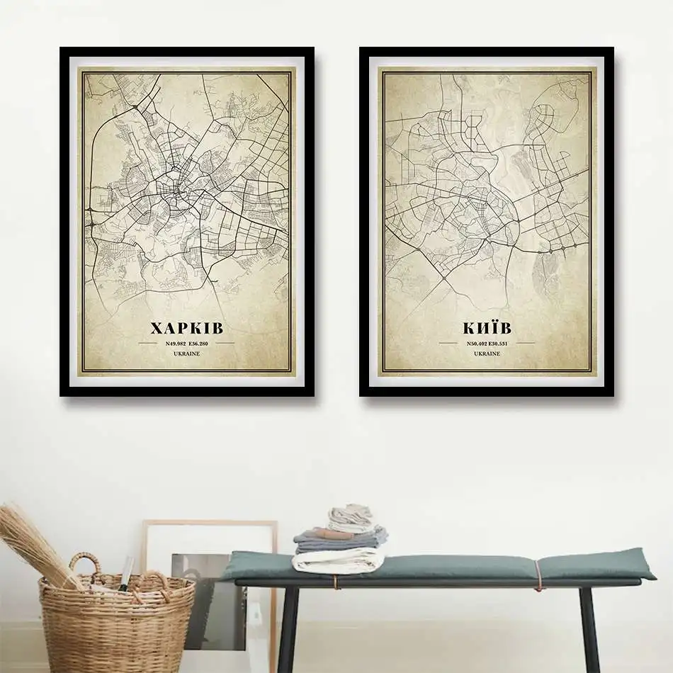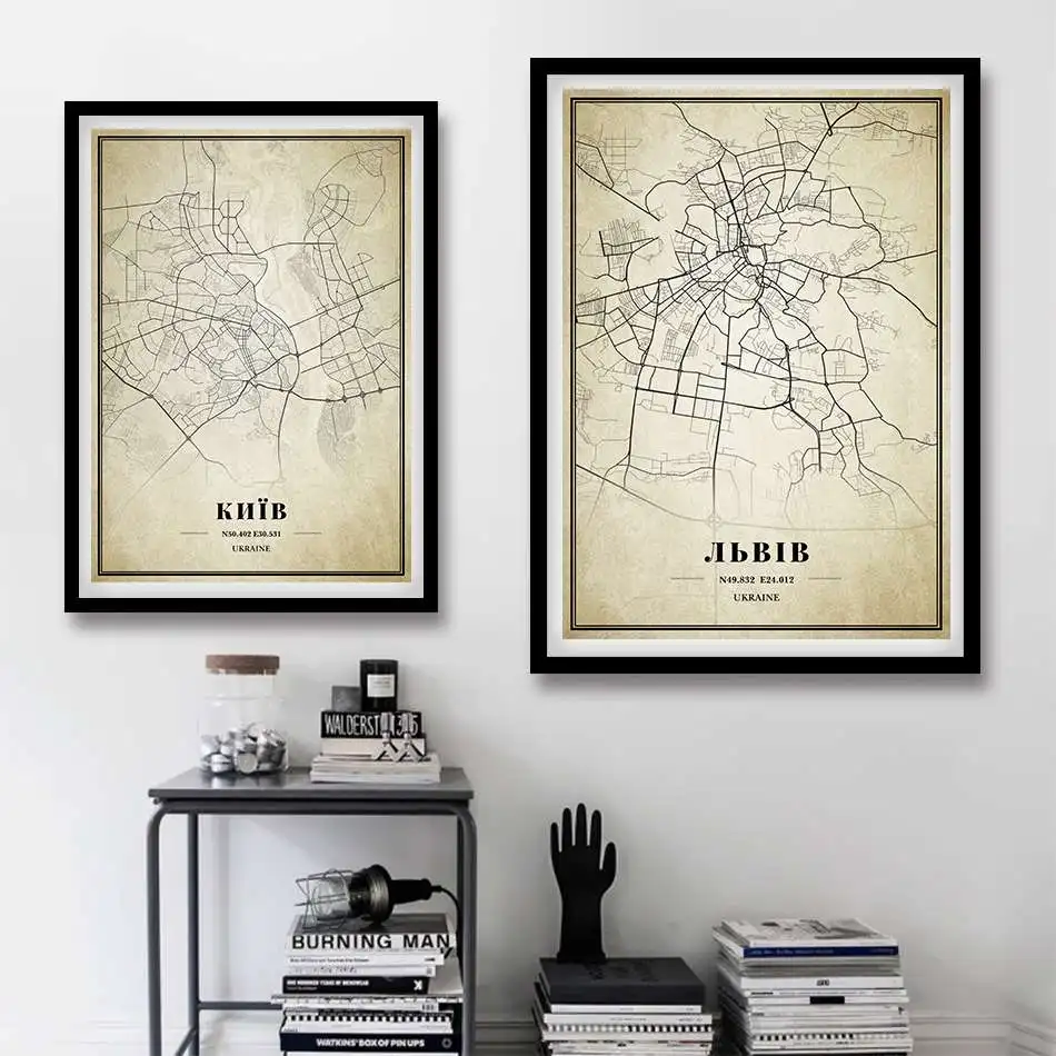 Украина Львов Харьков Киев Днепр Запорожья Винтаж Карта города холст картины Винтаж плакат из крафт-бумаги с покрытием Арт Декор для дома подарок