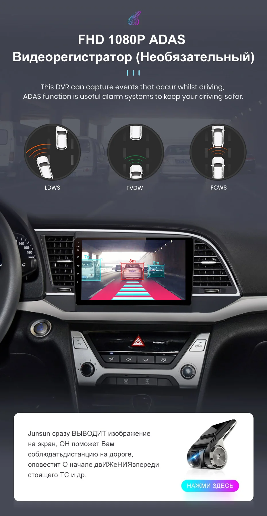 >> Junsun V1 для функции Hyundai Elantra 2015-2018> Основные функции: Android 10.0 + 9-дюймовый экран IPS + четырехъядерный процессор 1,2 ГГц (восемь ядер 1,8 ГГц дополнительно) + DDR3 1 ГБ флэш-памяти (2 ГБ / 4 ГБ / 6 ГБ дополнительно) + 16 ГБ памяти (32 ГБ / 64 ГБ / 128 ГБ дополнительно) + WIFI ( Сеть 4G опционально) + Зеркальное соединение + Управление рулевым колесом + RDS / DSP (опционально)> Специальные функции:1. PIN-код к PIN-коду: кабель питания радио Junsun - это контактный штырь, прост в установке;2. Встроенный Carplay / Android Auto: поддержка версии V1Pro, просто используйте телефонный кабель, подключите его, стабильный и простой в использовании;3. Поддержка подголовника: поддержка только версии Junsun V1;Дополнительные аксессуары> Управление голосом AI: просто произнесите командное слово, управляйте радио без рук, сделайте вождение более безопасным> Камера ADAS DVR, мониторинг давления в шинах, OBD2, внешний микрофон, кабель RCA;