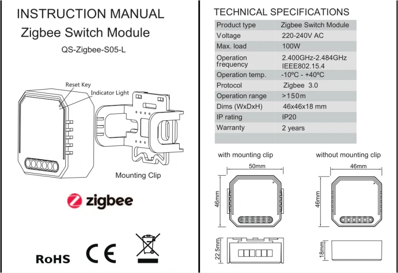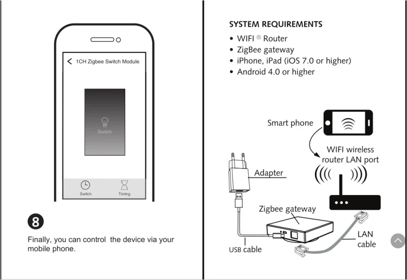 1. Это переключатель интеллектуального модуля Zigbee, который должен использоваться под концентратором шлюза Zigbee, подключенным к Протоколу Zigebee.
