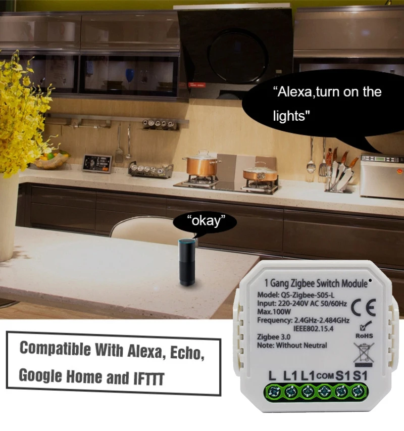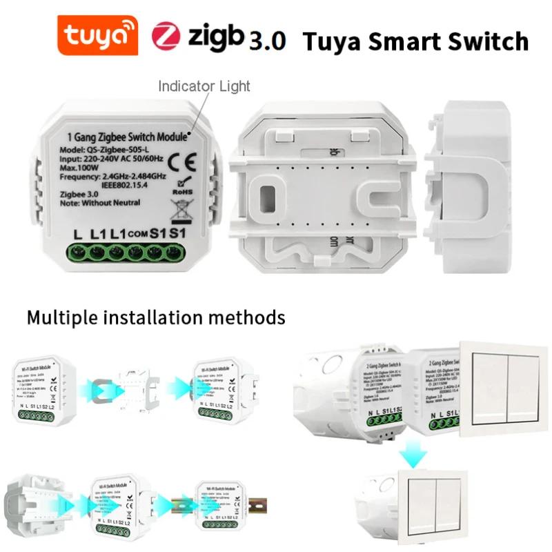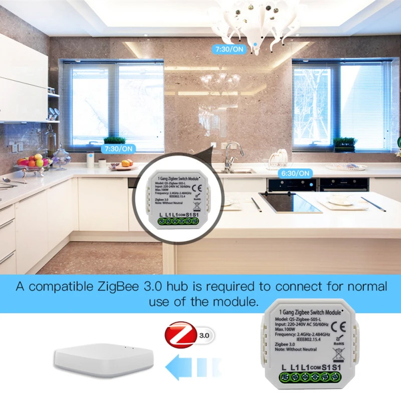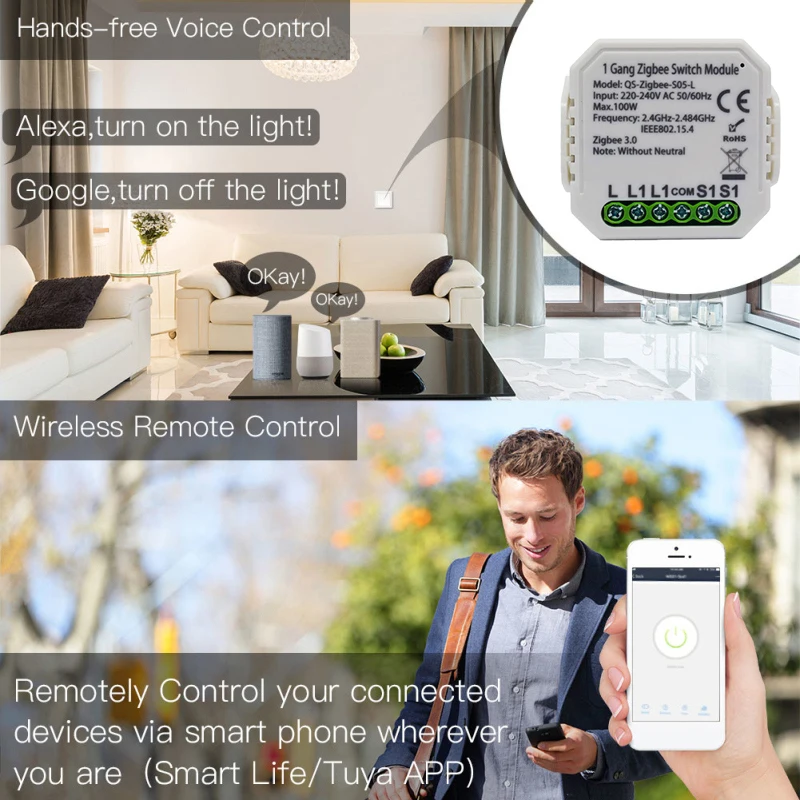 1. Этот умный модуль Tuya ZigBee 3,0 разработан специально с протоколом ZigBee 3,0, совместим с hub Tuya ZigBee (также поддерживается смарт-устройствами) для реализации всей связи вашего дома, действительно хорошая замена нестабильному Wi-Fi. Протокол ZigBee 3,0 с мини-дизайном для коробки ЕС/настенный переключатель стандарта Великобритании, И легко впишется в настенная коробка переключателей вашего традиционного переключателя без какого-либо влияния на ваш стиль украшения, чтобы сделать его умным, предоставление вашим устройствам максимального включения/выключения интеллектуального преобразования и преобразования большинства совместимых продуктов в интеллектуальные; Традиционный переключатель и этот умный модуль могут работать независимо без помех.