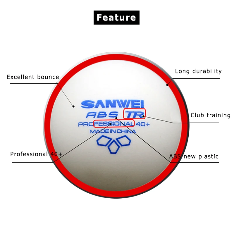 Мячи для настольного тенниса SANWEI ABS TR, 3 звезды, 40 +, новый м...