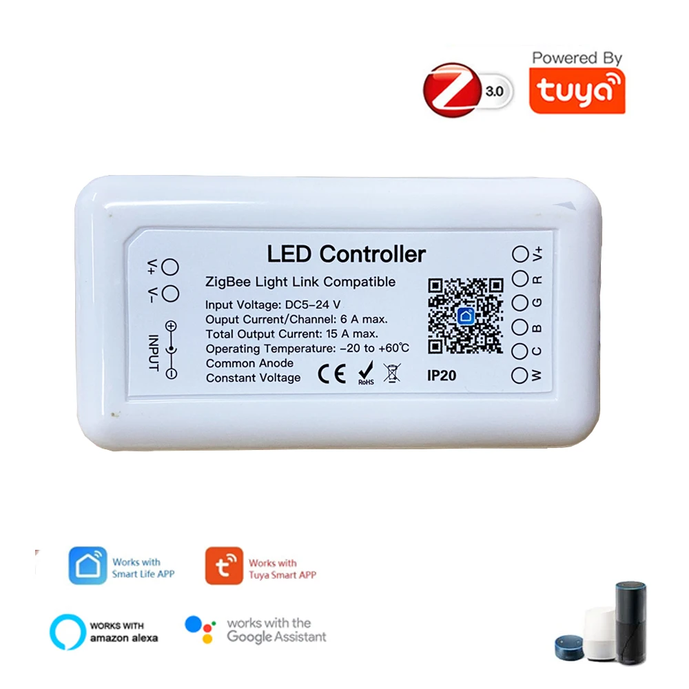 Умный светодиодный регулятор яркости TUYA Zigbee, контроллер затухания светодиодных лент RGB RGBW RGBCW RGBCCT, 5 В, 12 В, 24 В, управление через приложение Echo Plus, голосовое управление