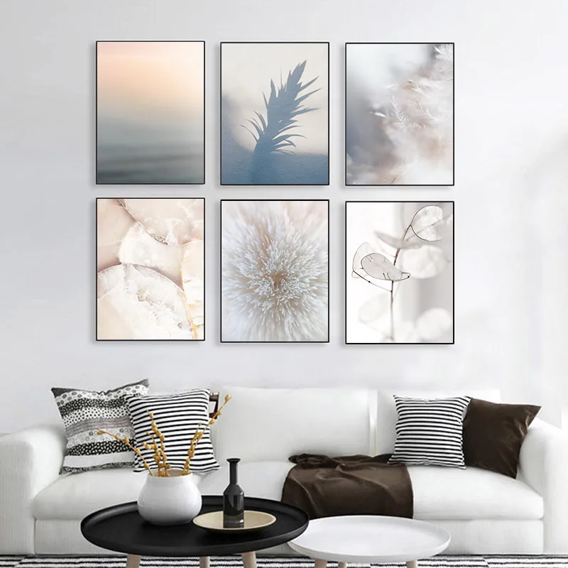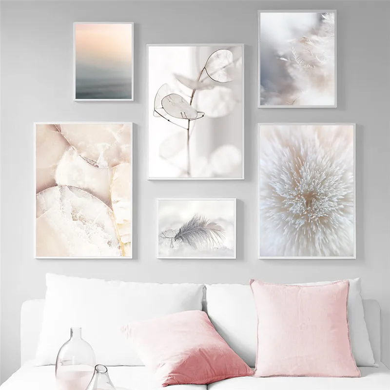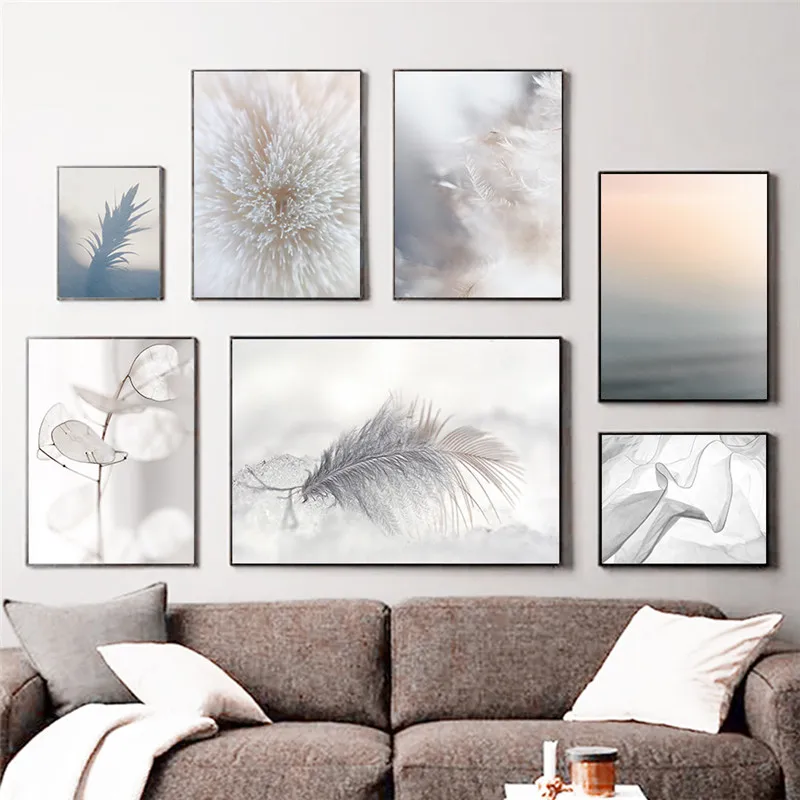 Nordic минималистское полотно принт мягкое перо белое платье с цветочным рисунком Плакаты настенные картины для Гостиная домашний декор TB121