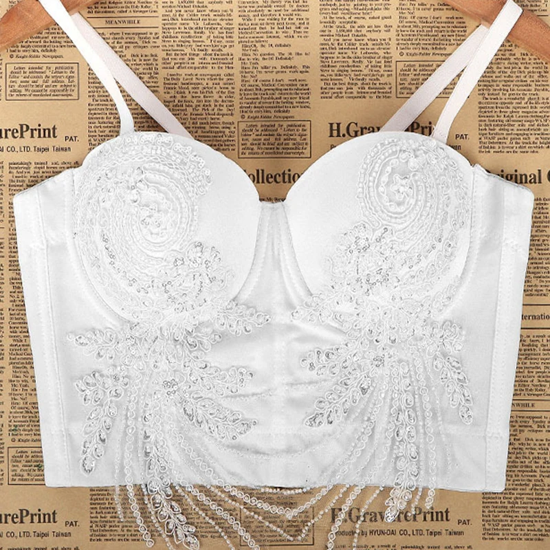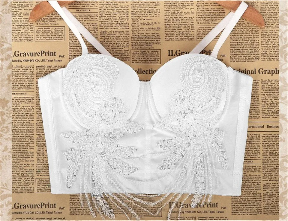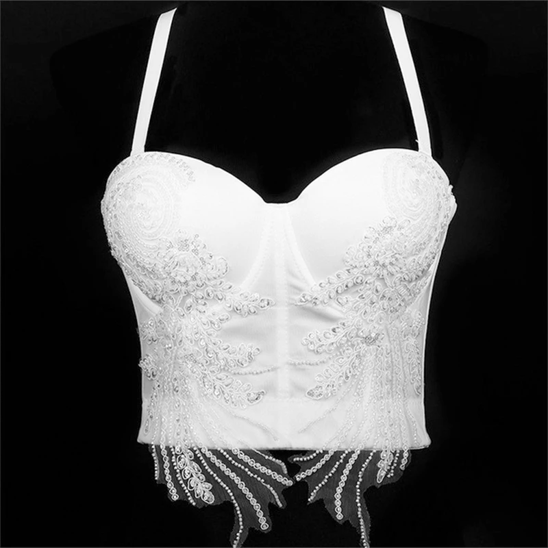 Женские блестящие бюстгальтеры, бюстгальтеры, тренер для талии, модные кроп-топы на бретелях, белая одежда для вечеринки с ангелом