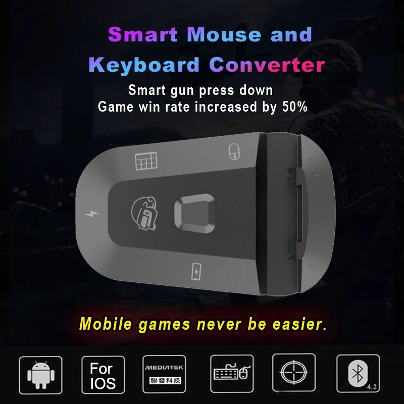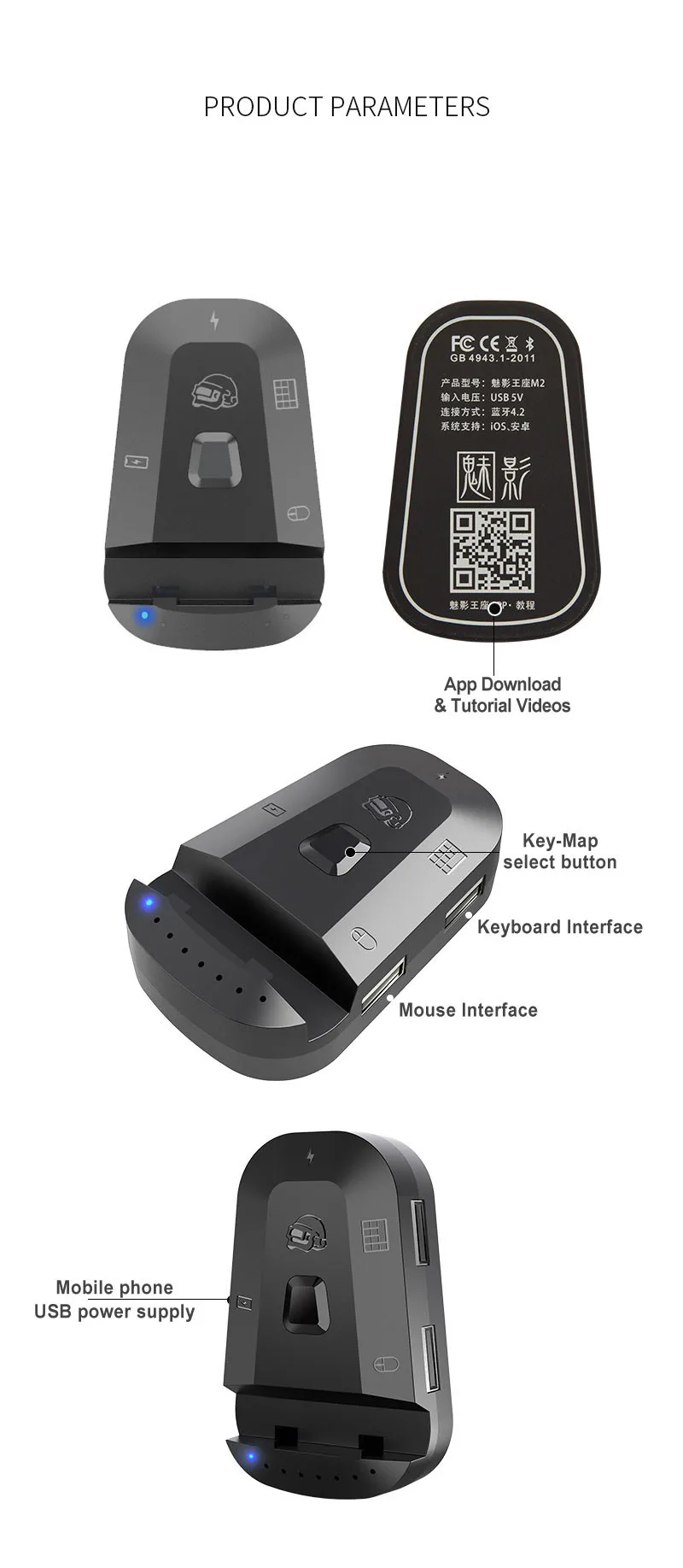Это многофункциональный конвертер мыши с клавиатурой для мобильных игр. И играть, Bluetooth 4,2 подключения (около 0,1 s задержки), также подключение USB (без каких-либо задержек). Поддержка IOS (не поддерживает IOS 13,4 и выше) Android Подходит для игроков на мобильный телефон, не изменяйте официальные данные, не будет запрещено Без задержек, без коробки Зарядка во время игры PUBG Поддержка настраиваемых настроек