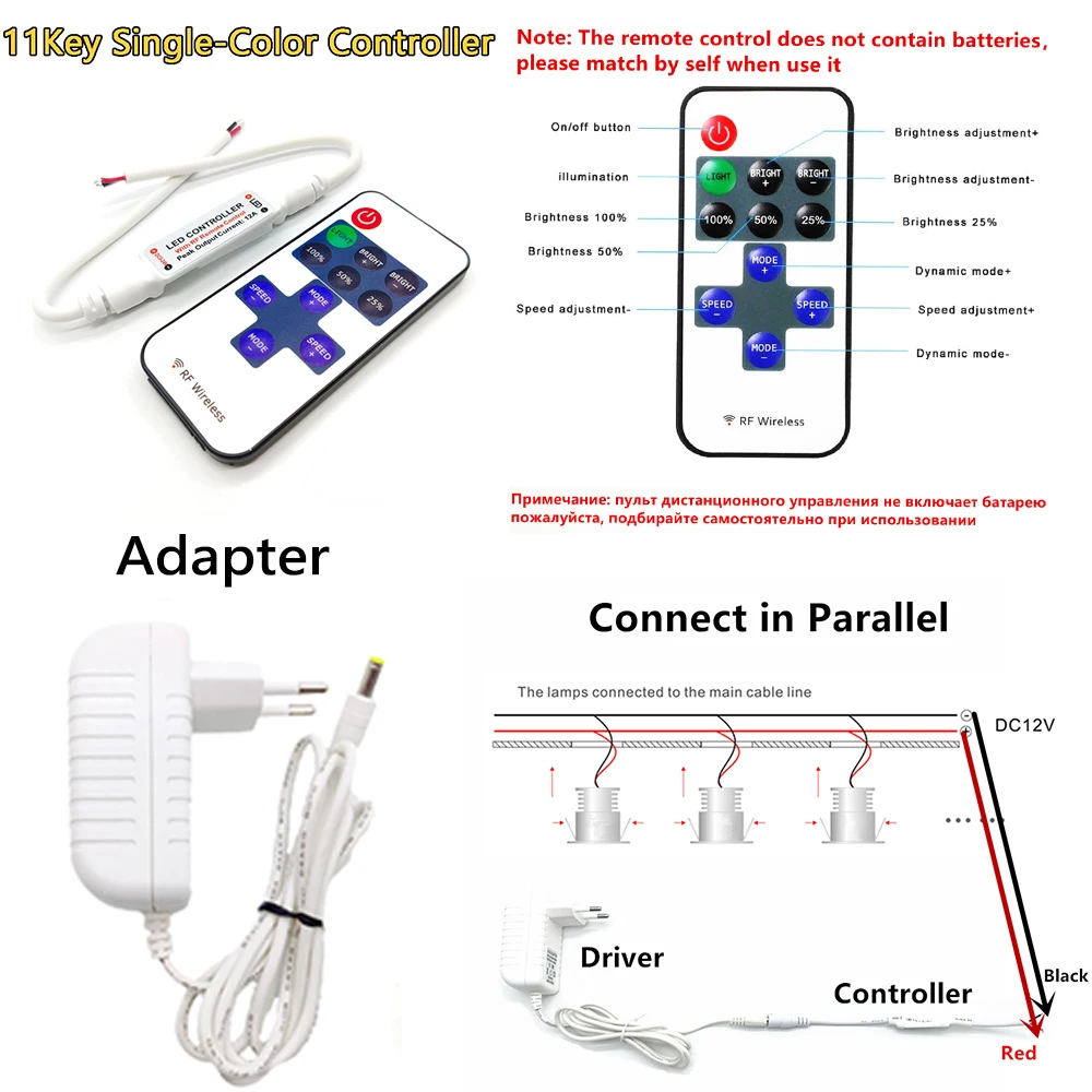 Диммируемый светодиодный светильник 1 Вт, светильник для помещений, потолочный светильник, светильник для витрины, кабинета, лестницы, с адаптером дистанционного управления