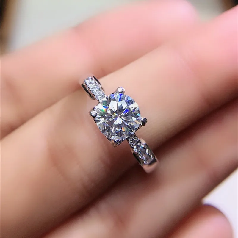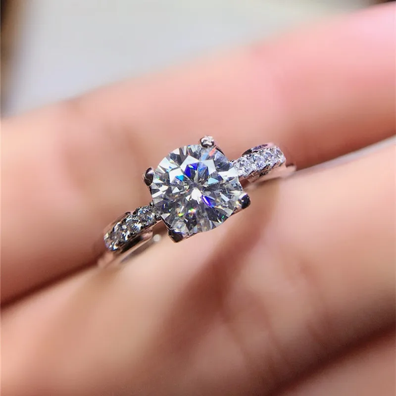 925 пробы серебро 1 карат отличное огранки Тесты прошел D Цвет Муассанит головы коровы кольцо серебро 925 ювелирных изделий свадебный подарок