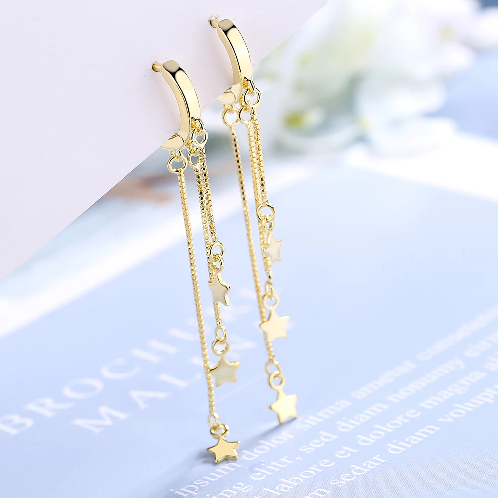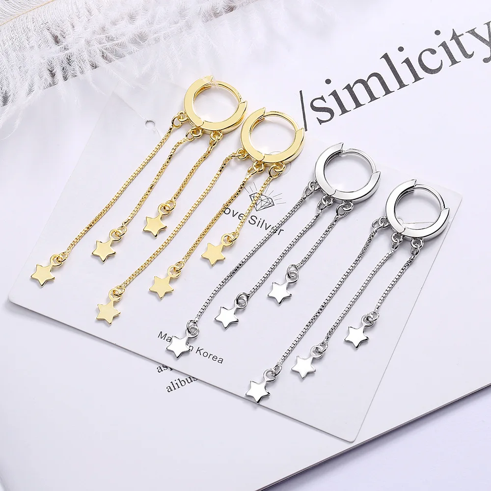 Женские длинные серьги из стерлингового серебра 925 пробы, золотые серьги-кисточки со звездами, модные ювелирные изделия из серебра 2021