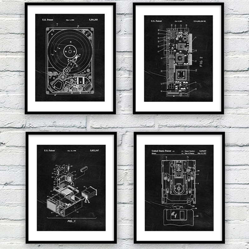 Компьютерная схема Печать Жесткий диск патент винтажная Картина на холсте офисное настенное Искусство Декор постер научный подарок стимпанк художественная картина