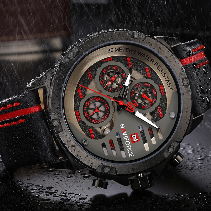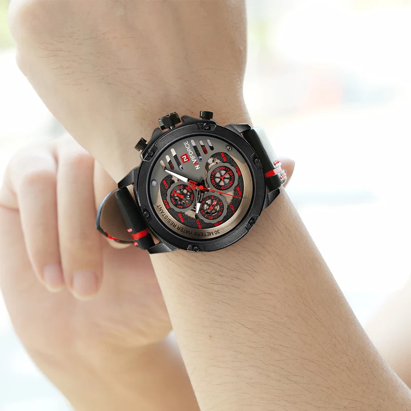 Часы наручные NAVIFORCE Мужские кварцевые, Роскошные Модные Аналоговые спортивные водонепроницаемые с кожаным ремешком