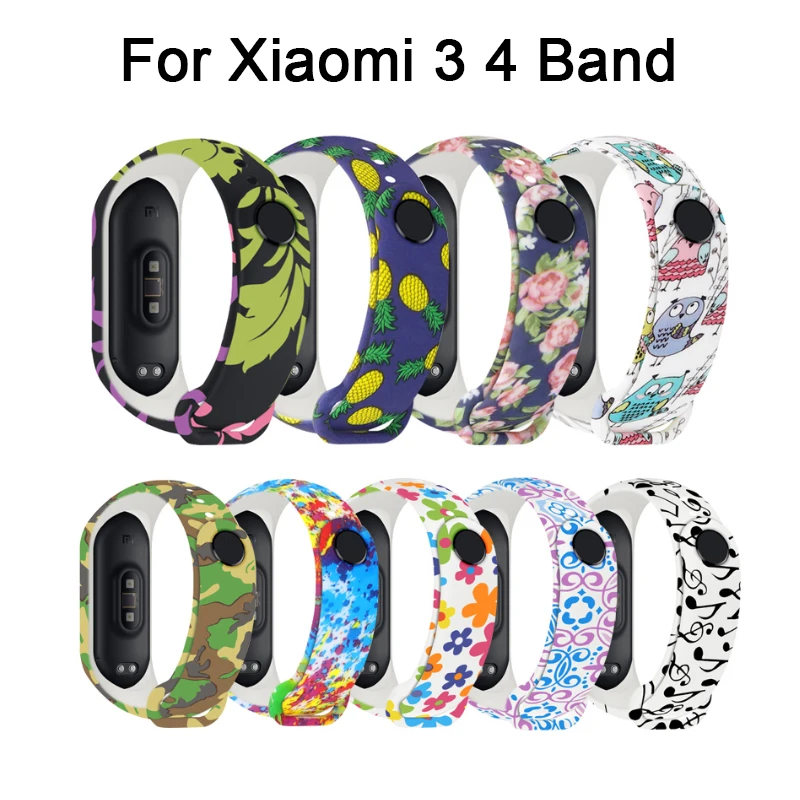 Ремешок силиконовый для Xiaomi mi band 4, сменный Браслет с принтом для смарт-часов Mi band 3
