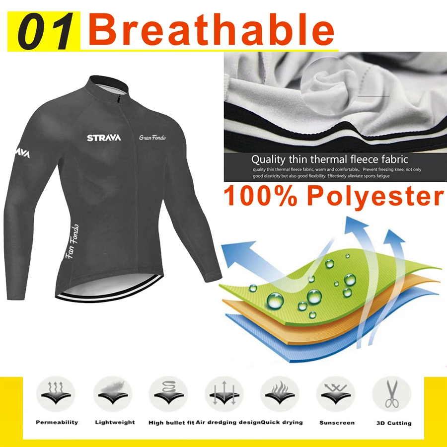 Спортивные зимние теплые флисовые велосипедные костюмы STRAVA, комп...