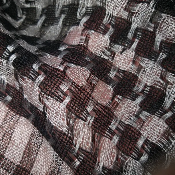 легкий, тоненький, просвечивается, но я такой и искала не для тепла а как украшение. запах есть, думаю после стирки пройдет.