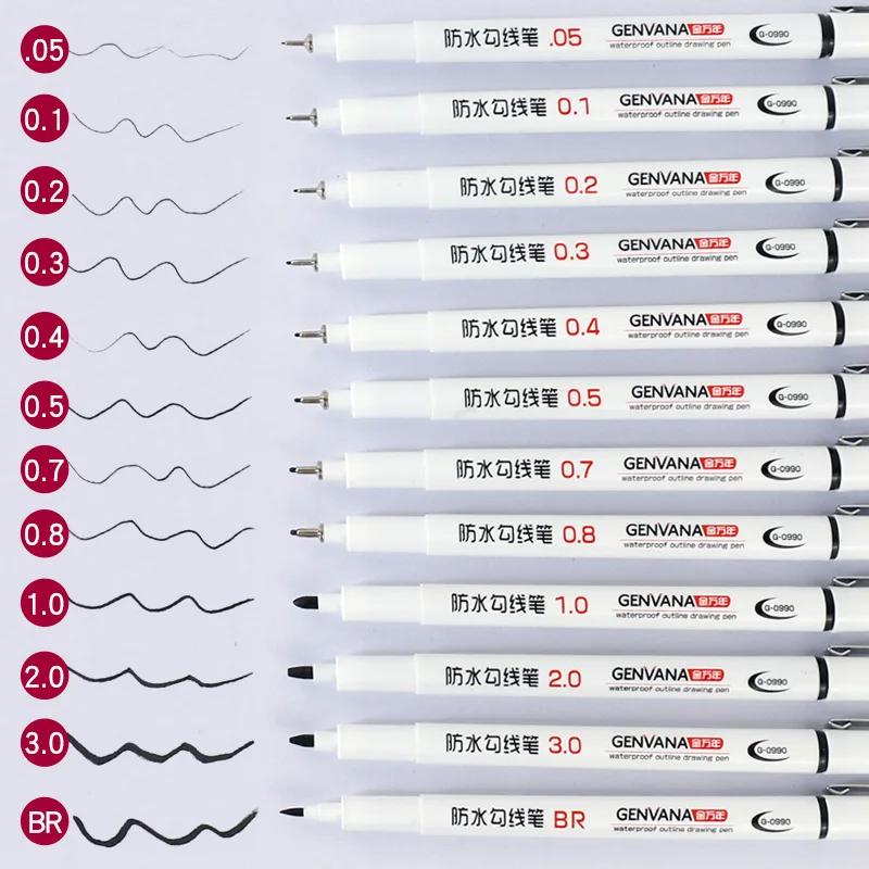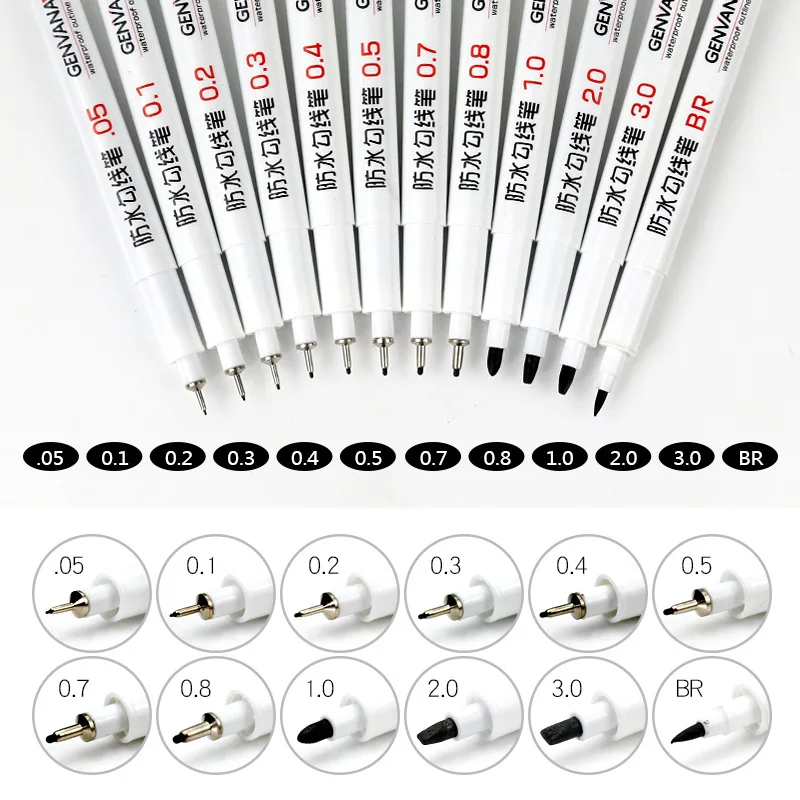 Водостойкая ручка для рисования с пигментным лайнером, 12 шт.