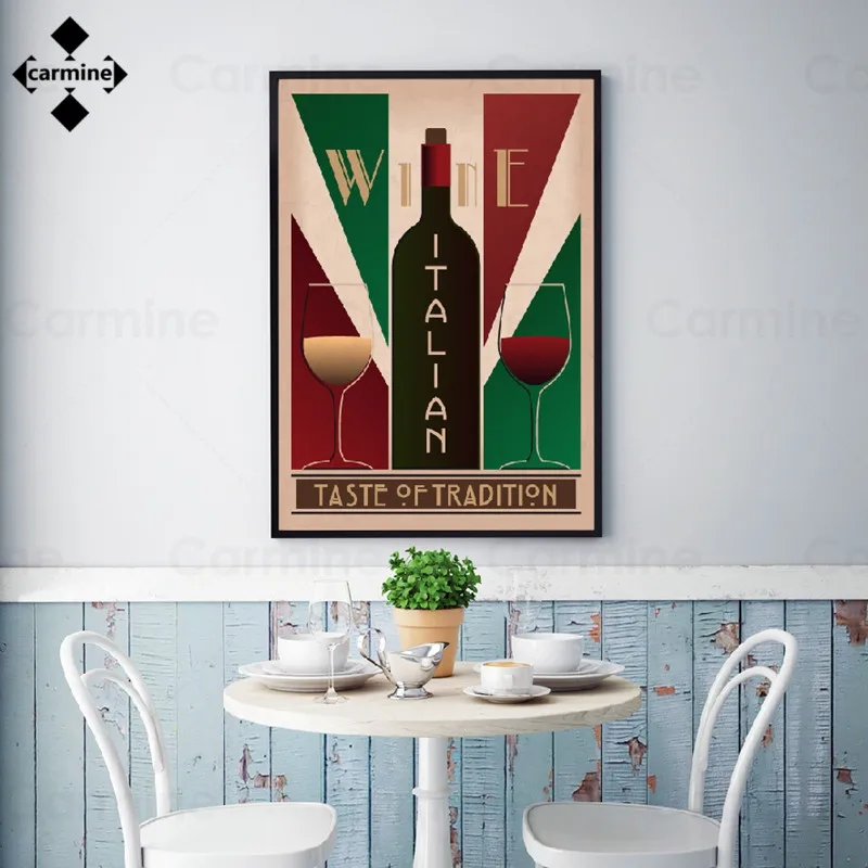 Вкусная картина с принтом красного вина, итальянская винная бутылка, Настенная картина, цельный стеклянный бокал, холст, Постер без рамки, печать, декор для спальни