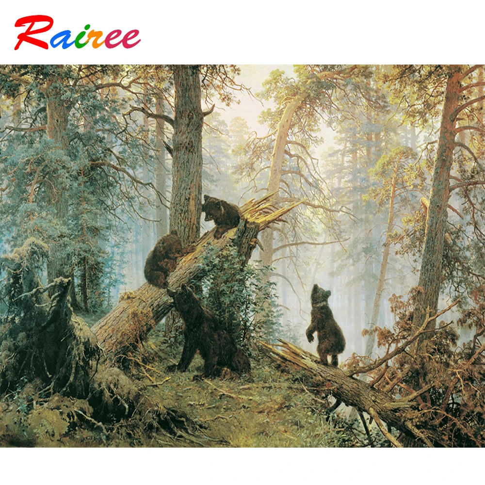 Shishki алмазная живопись Утром в сосновом лесу 5D сделай сам, алмазная вышивка с медведем Стразы