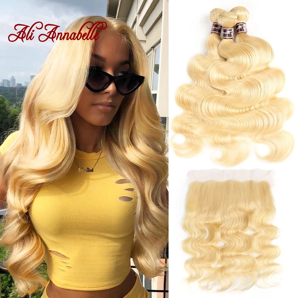 Ali Annabelle волосы бразильские волнистые светлые волосы 3 пряди с 13x4 кружевной фронтальной