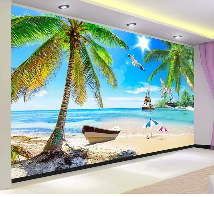 3D фотообои на заказ, с изображением Средиземного моря, гостиной, спальни, парусника, кокосового дерева, пляжа, настенное украшение, пейзажная роспись