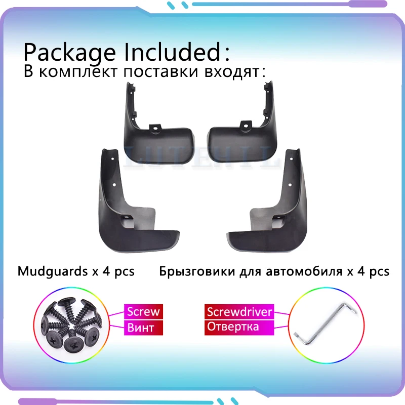 4 x брызговика, 1 x отвертка, сумка для фиксации винтов