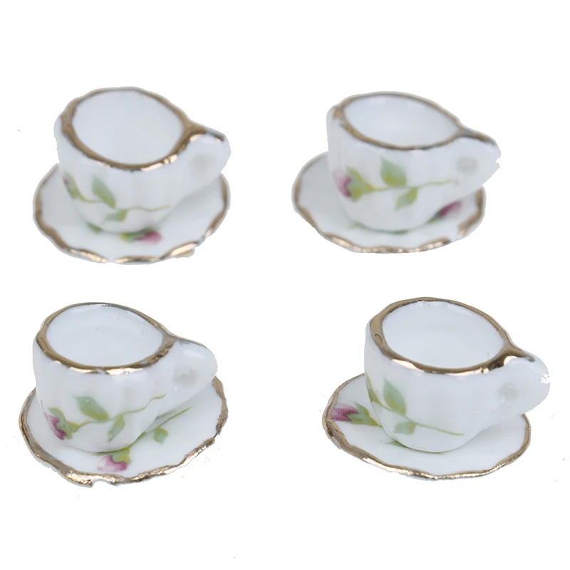 Керамические чашки для кофе и чая, 15 шт., с розовыми цветами, 112, посуда для кукол, кухонные принадлежности, Миниатюрный Кукольный дом