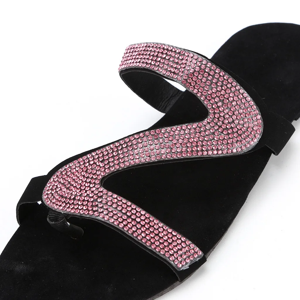 Летние пляжные шлепанцы для женщин, повседневные однотонные римские шлепанцы на плоской подошве с кристаллами, большие размеры, женские повседневные сандалии, обувь