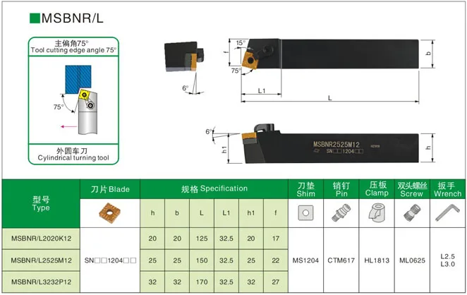 Держатель внешнего токарного инструмента MSBNR2020K12 MSBNL2020K12, резец с ЧПУ, твердосплавные втулки для SNMG, 1 шт.