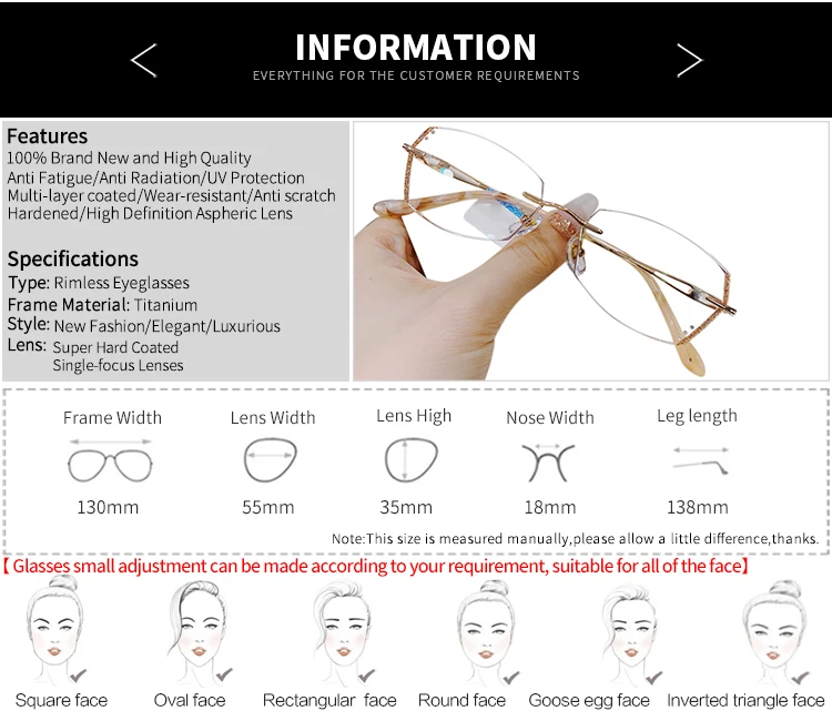 2021 новый анти-синий светильник фильтр без оправы Титан близорукость Для женщин очки светильник вес Для женщин по рецепту алмазные режущие очки