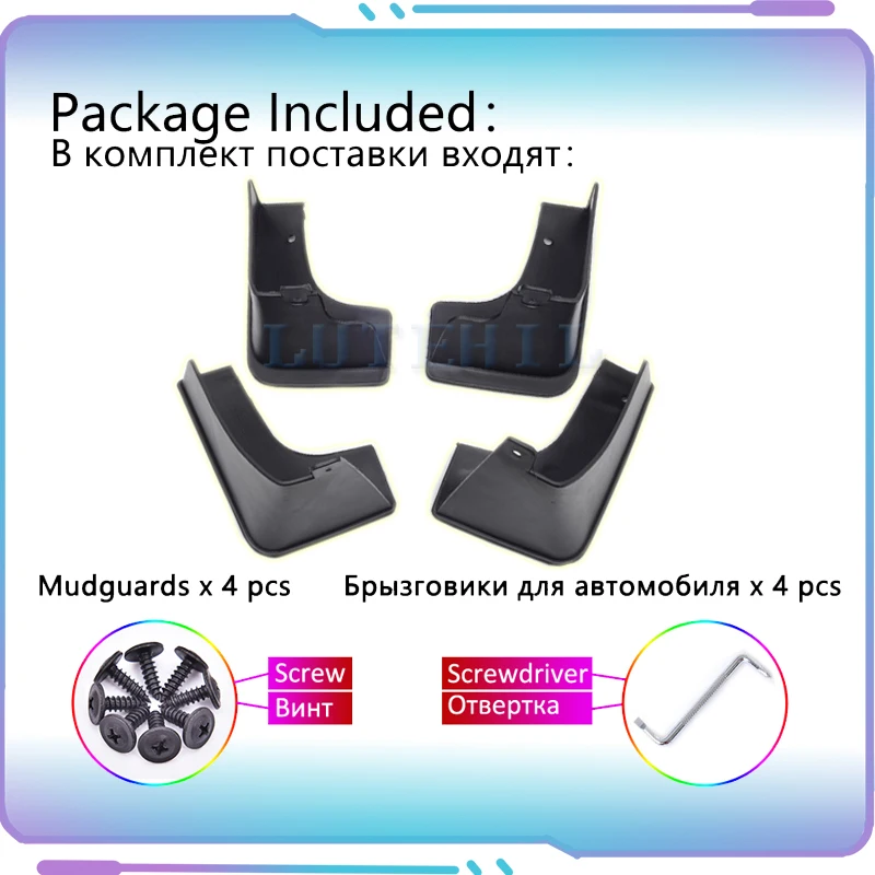 4 x брызговика, 1 x отвертка, сумка для фиксации винтов