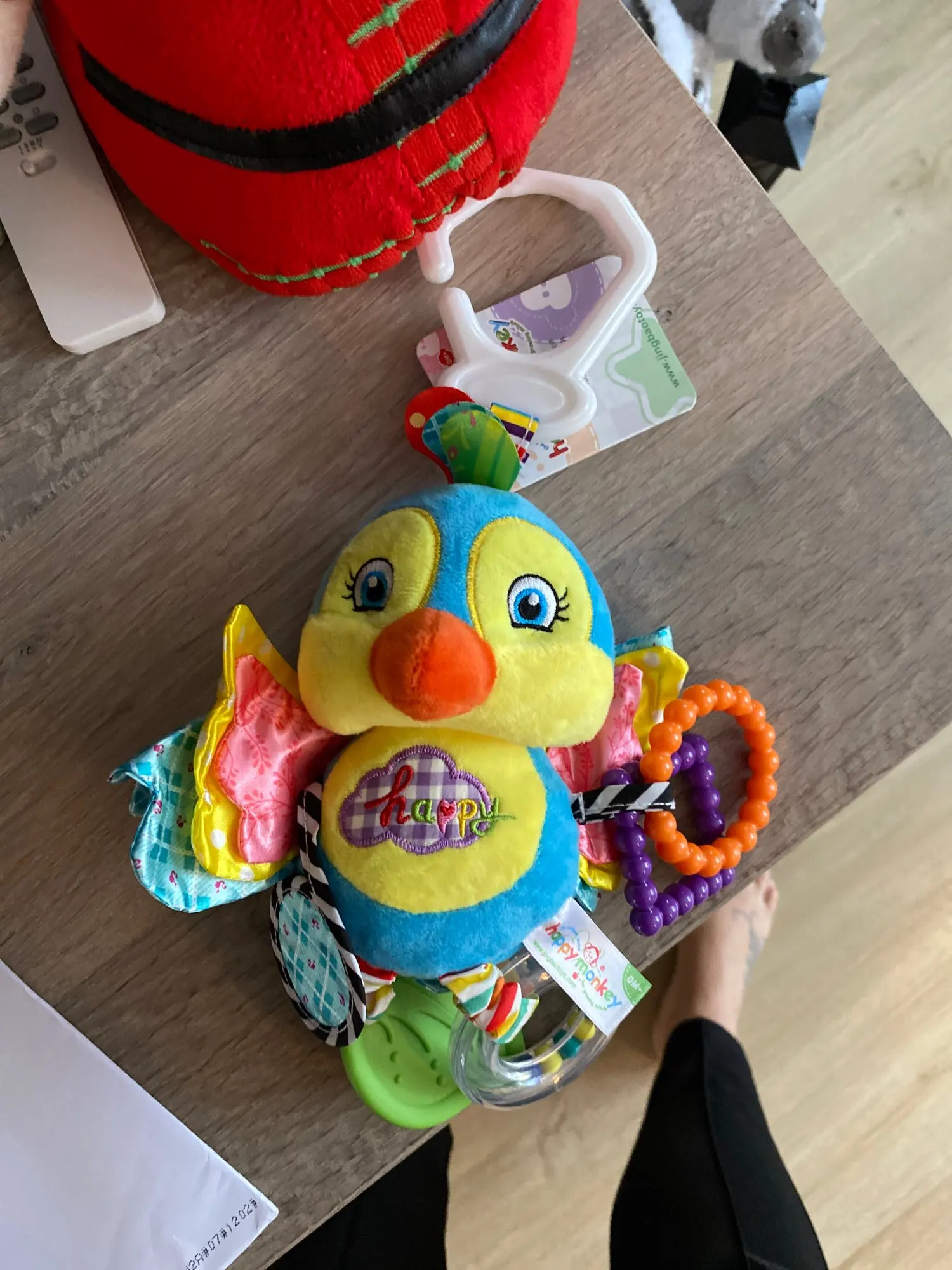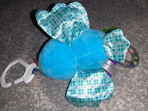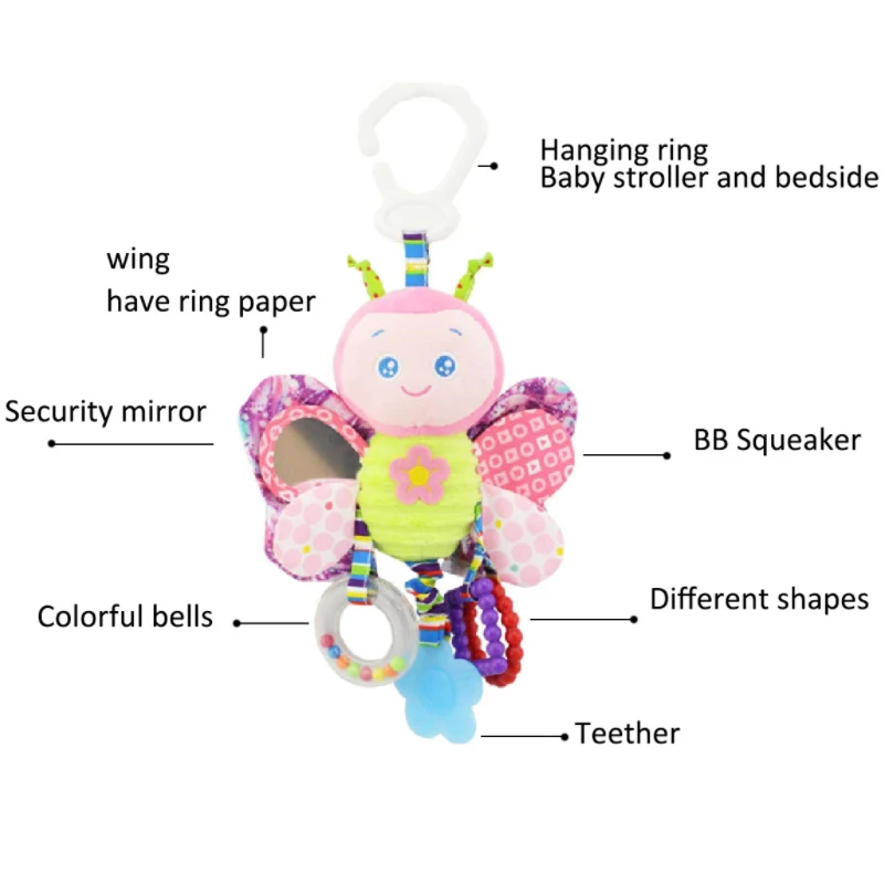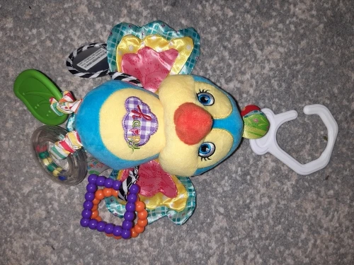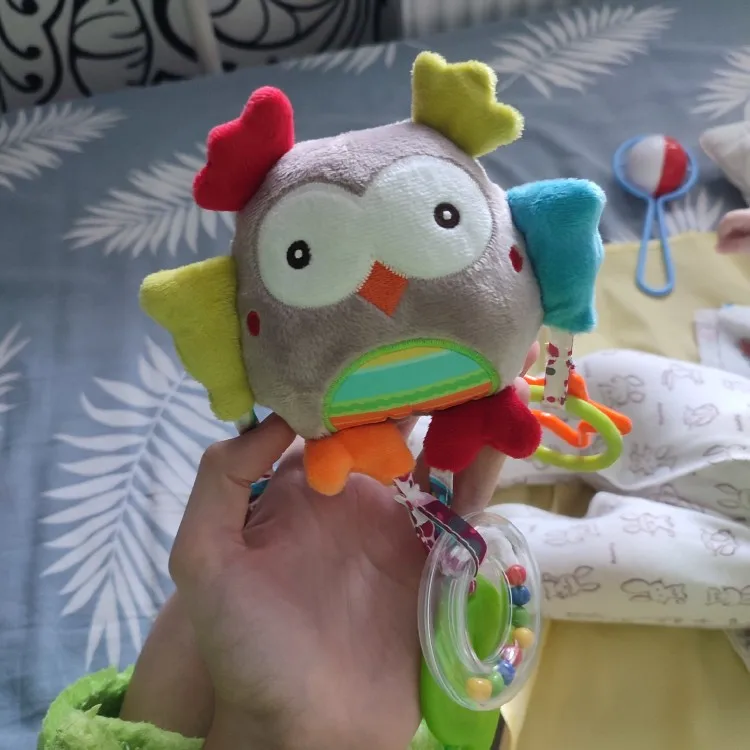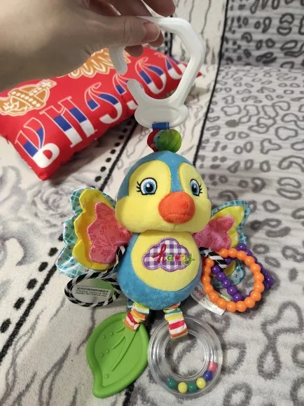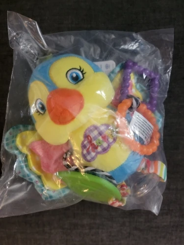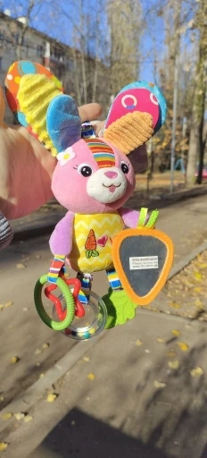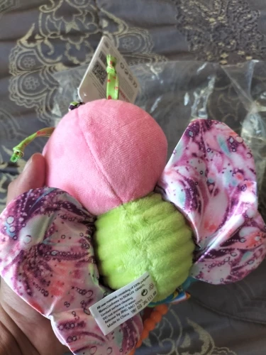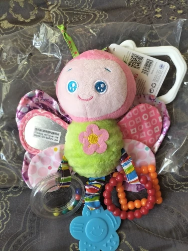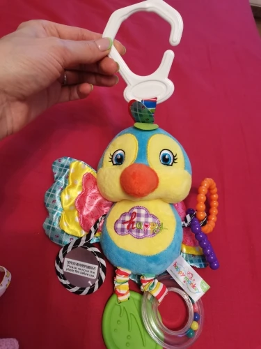 отличная погремушка яркая мягкая приятная ребёнку очень понравилась. и мне тоже. спасибо продавцу быстро качественно как раз к Дню рождения внучки . всё крылышки шабуршат. грызунки отличные и красивая яркая игрушка.