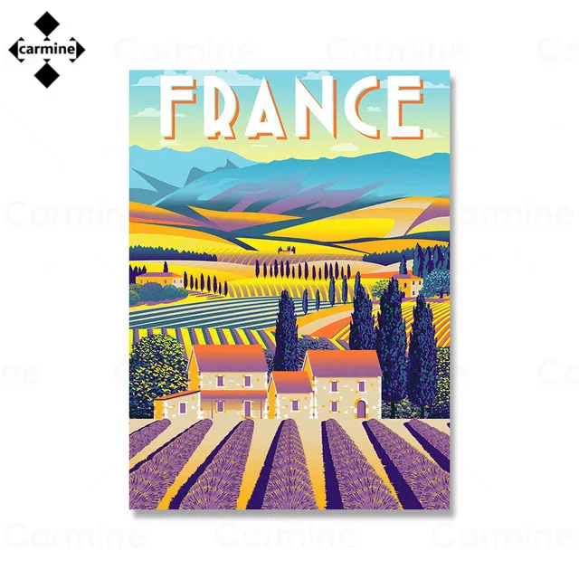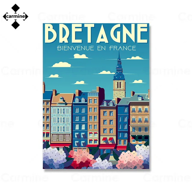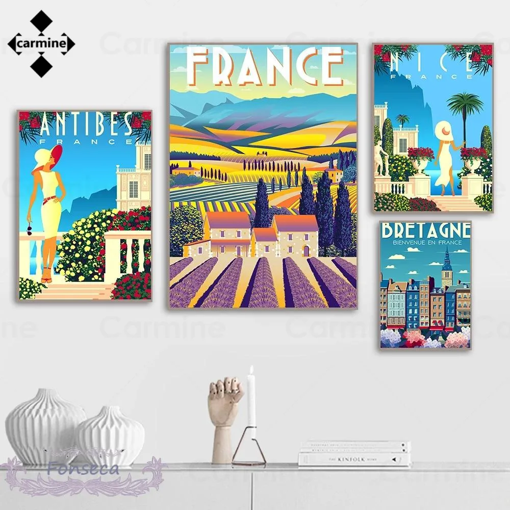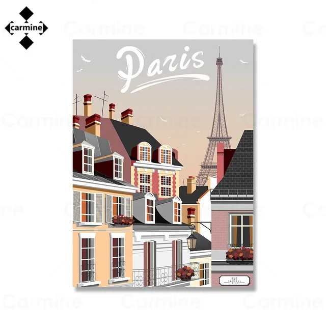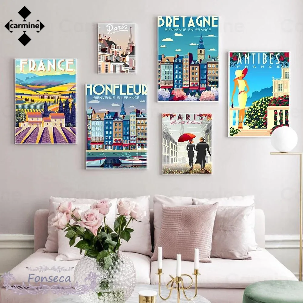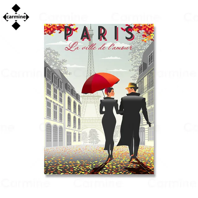 Ретро-постер с французским городским пейзажем, художественная картина на стену художественного оформления, романтический Париж, мультяшная Картина на холсте, украшение для дома и комнаты