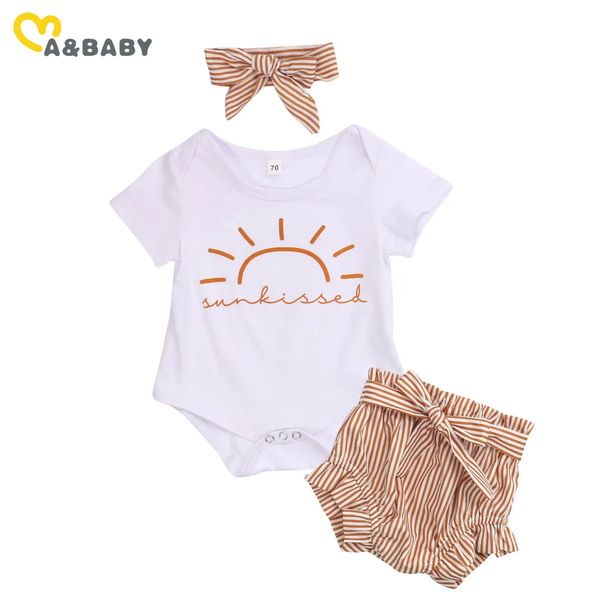 Ma и для маленьких детей; Размеры 0-24M летняя одежда для новорожденных; Для маленьких девочек наряды комбинезон-боди с надписью и бантом шорты в полоску, комплект одежды, одежда для малышей, Детский костюм, костюмы для девочек