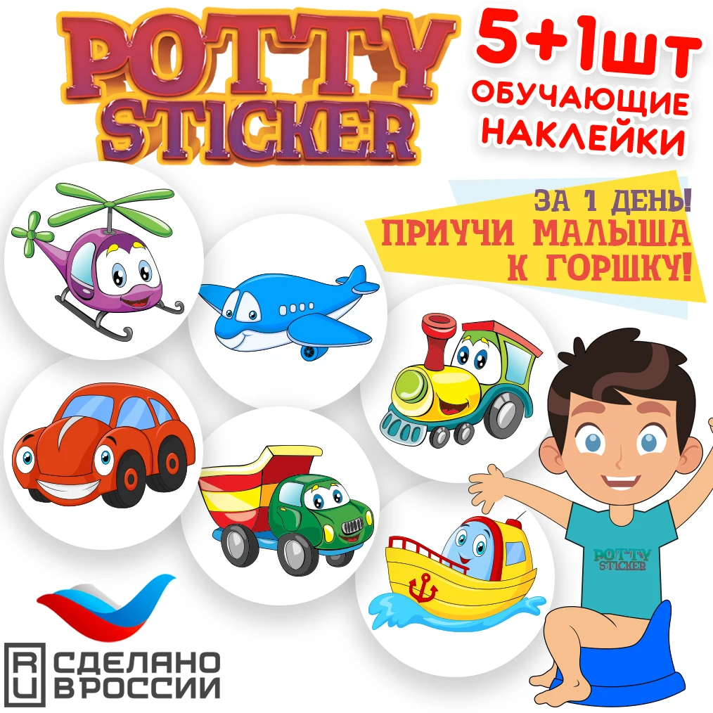 Обучающая наклейка для детского горшка Potty Sticker ТРАНСПОРТ (5+1 шт.)