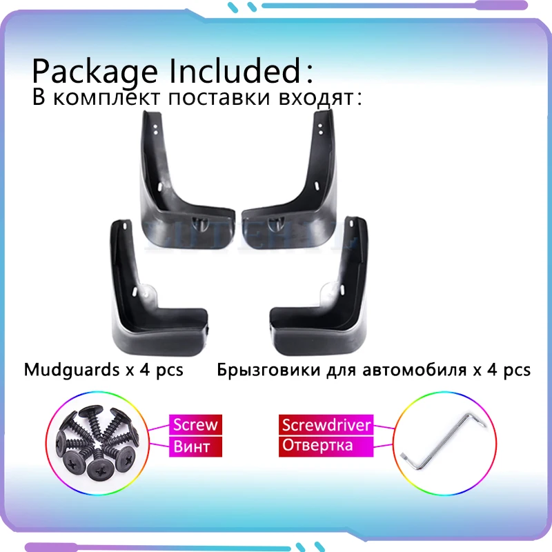 4 x брызговика, 1 x отвертка, сумка для фиксации винтов