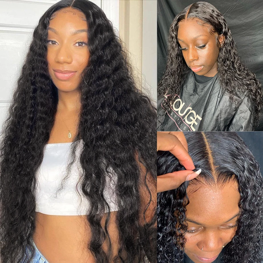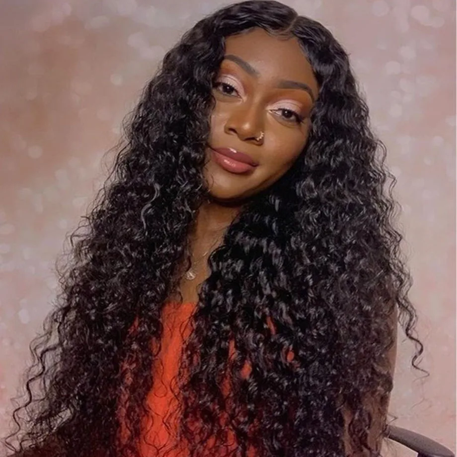 Кудрявые человеческие волосы парик для черных женщин 30 дюймов Волнистые кружевные передние парики предварительно сорванные 13х4 глубокая волна фронтальные бразильские парики закрытия