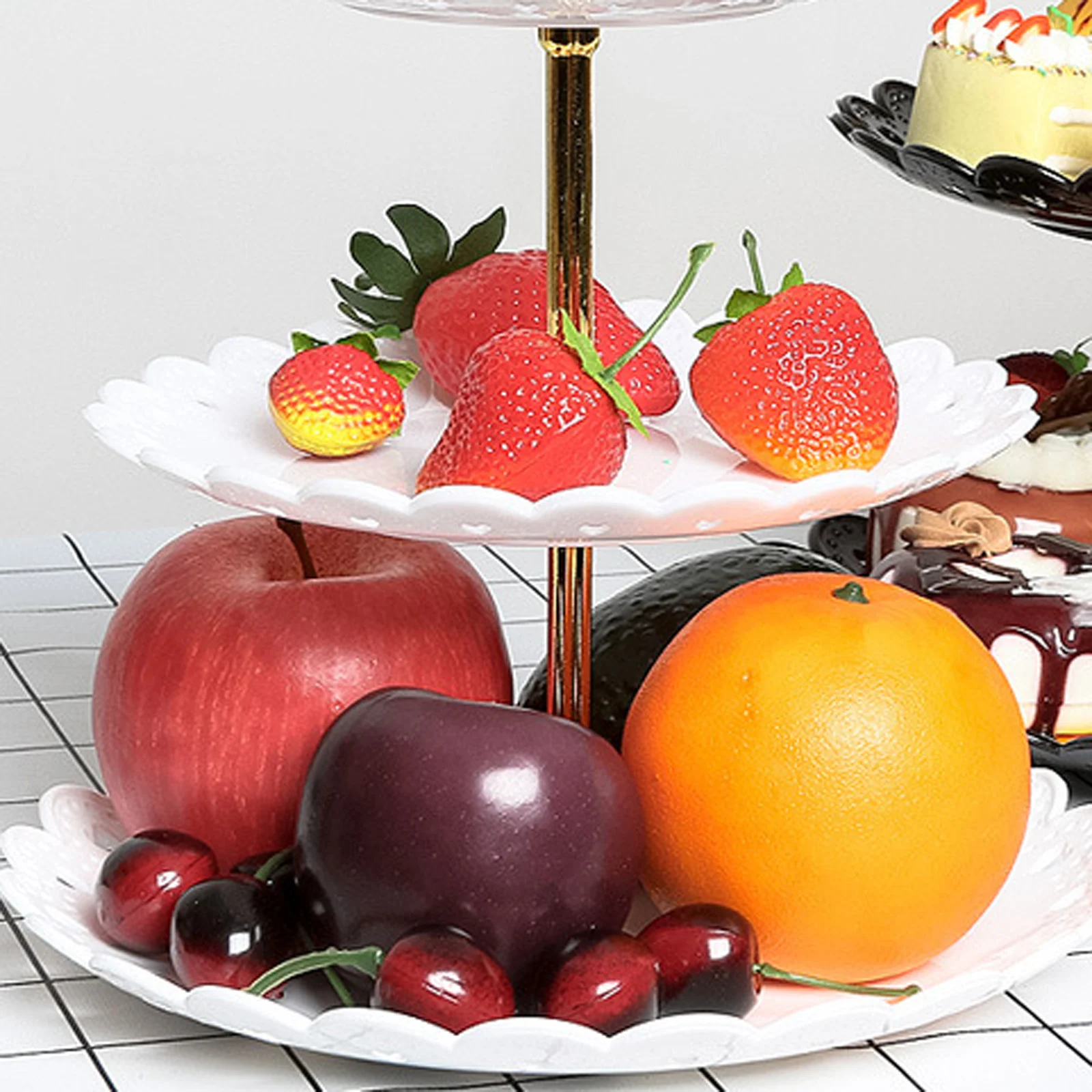 3-слойная подставка для торта с тарелкой десерт фрукты овощи Макаро...