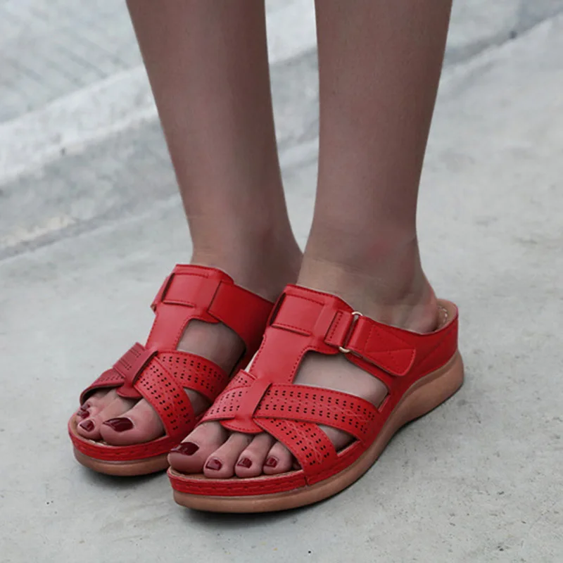 Босоножки женские ортопедические на платформе, винтажные сандалии с открытым носком, Нескользящая дышащая кожа, повседневная обувь в ретро стиле, лето 2021