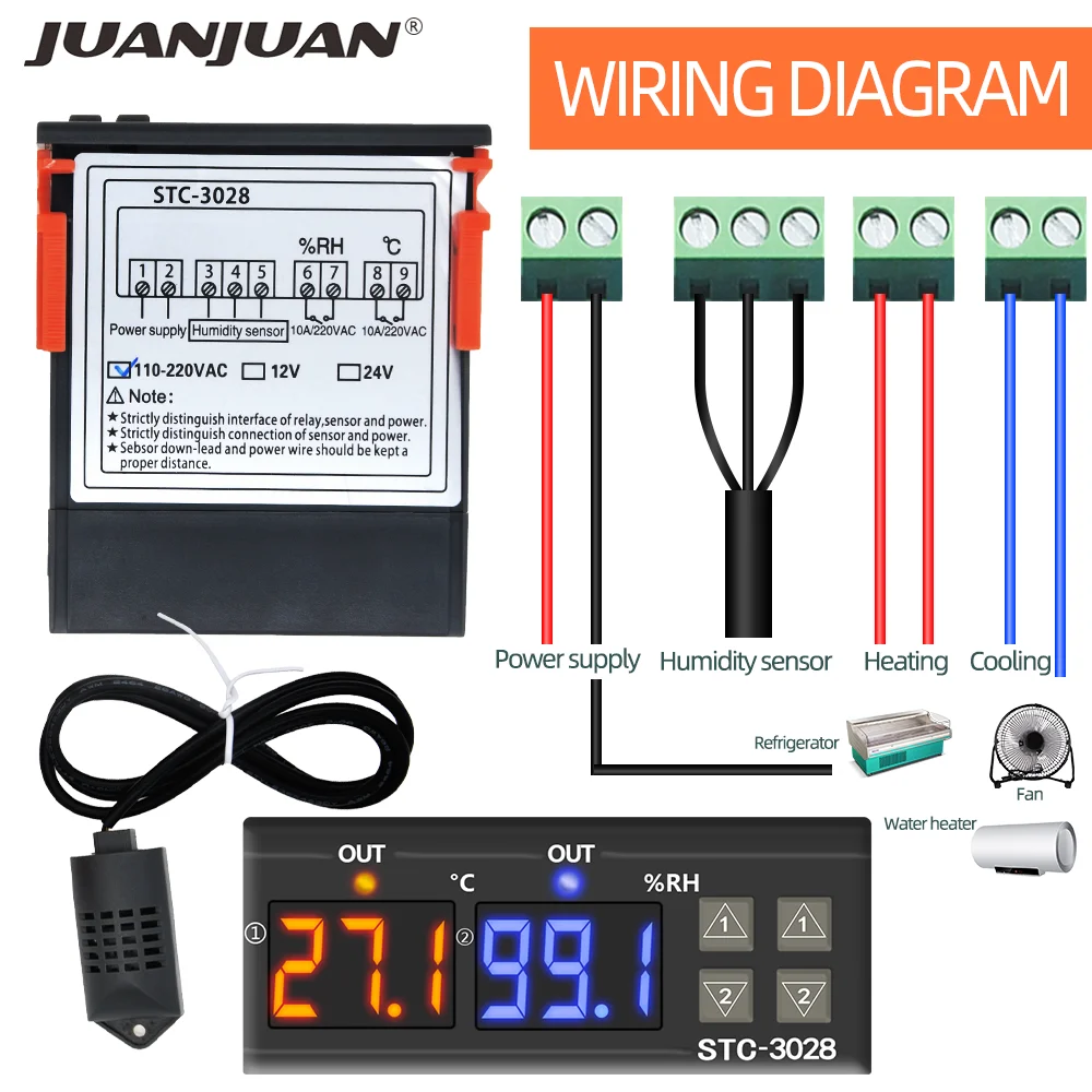 STC-3028, регулятор температуры и влажности воздуха 12 В24 В220 В 40%, контроллер гигрометра