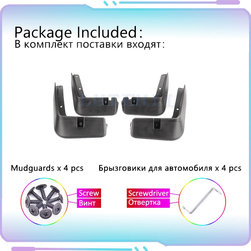 4 x брызговика, 1 x отвертка, сумка для фиксации винтов